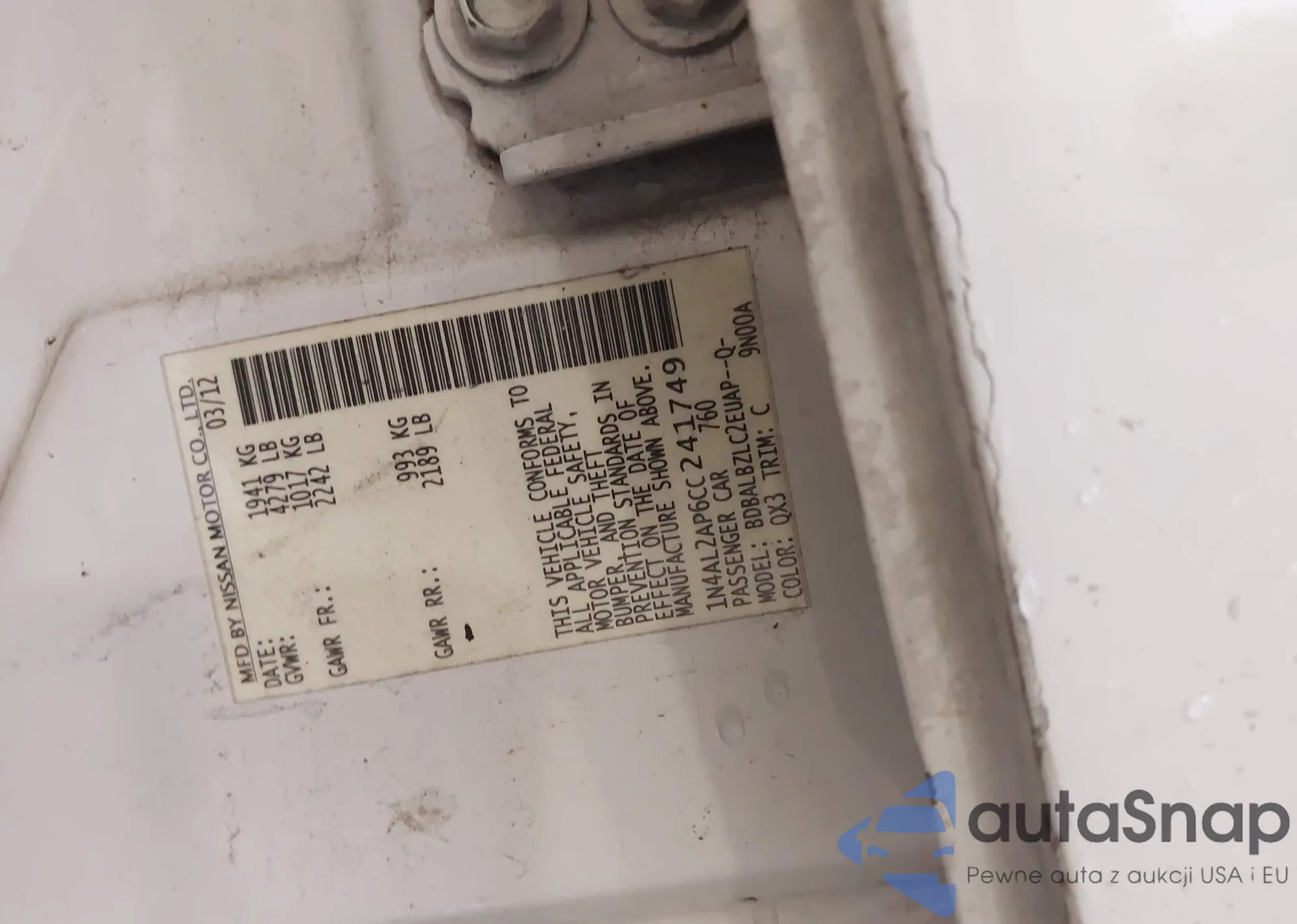 • VIN 1N4AL2AP6CC241749
