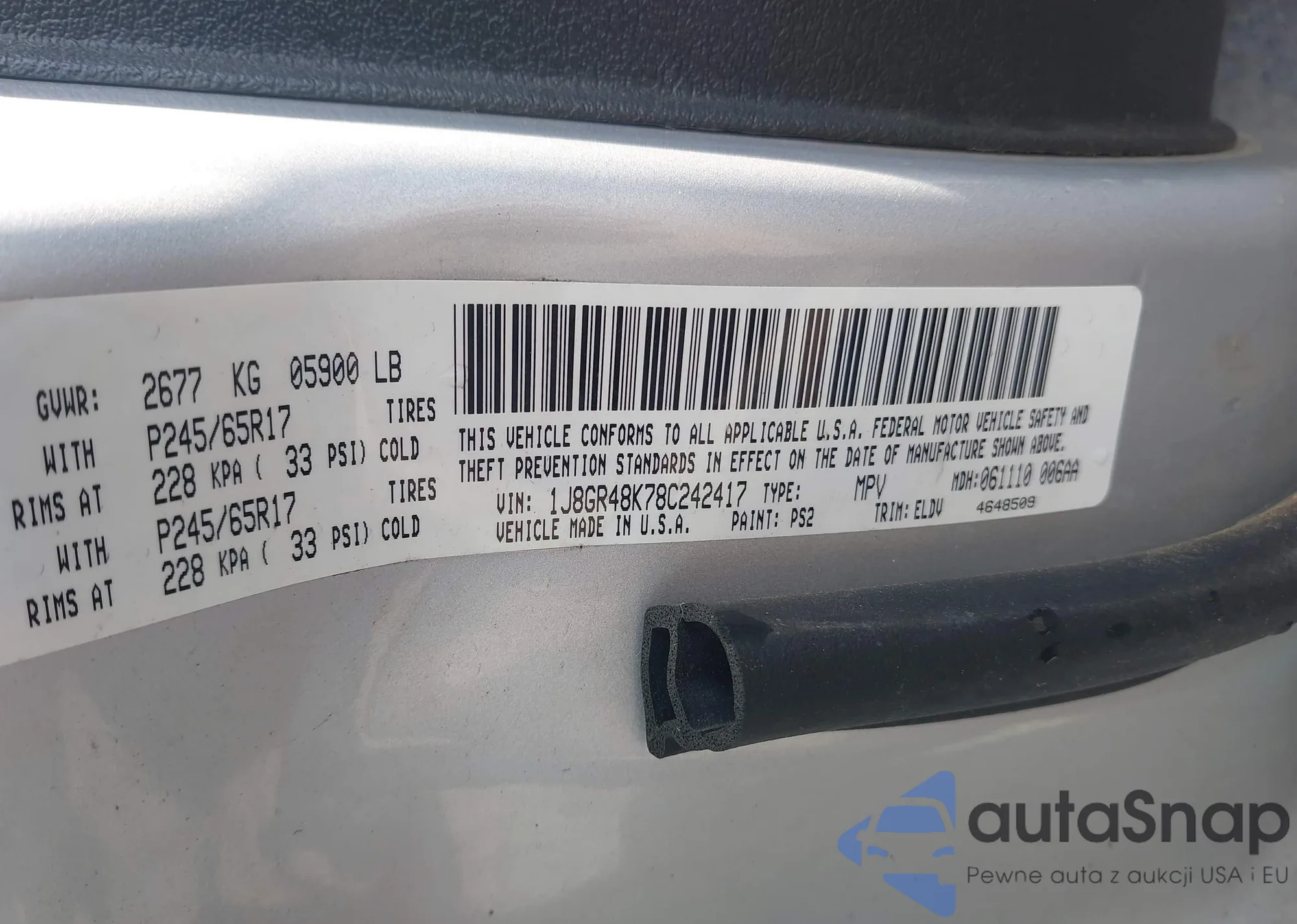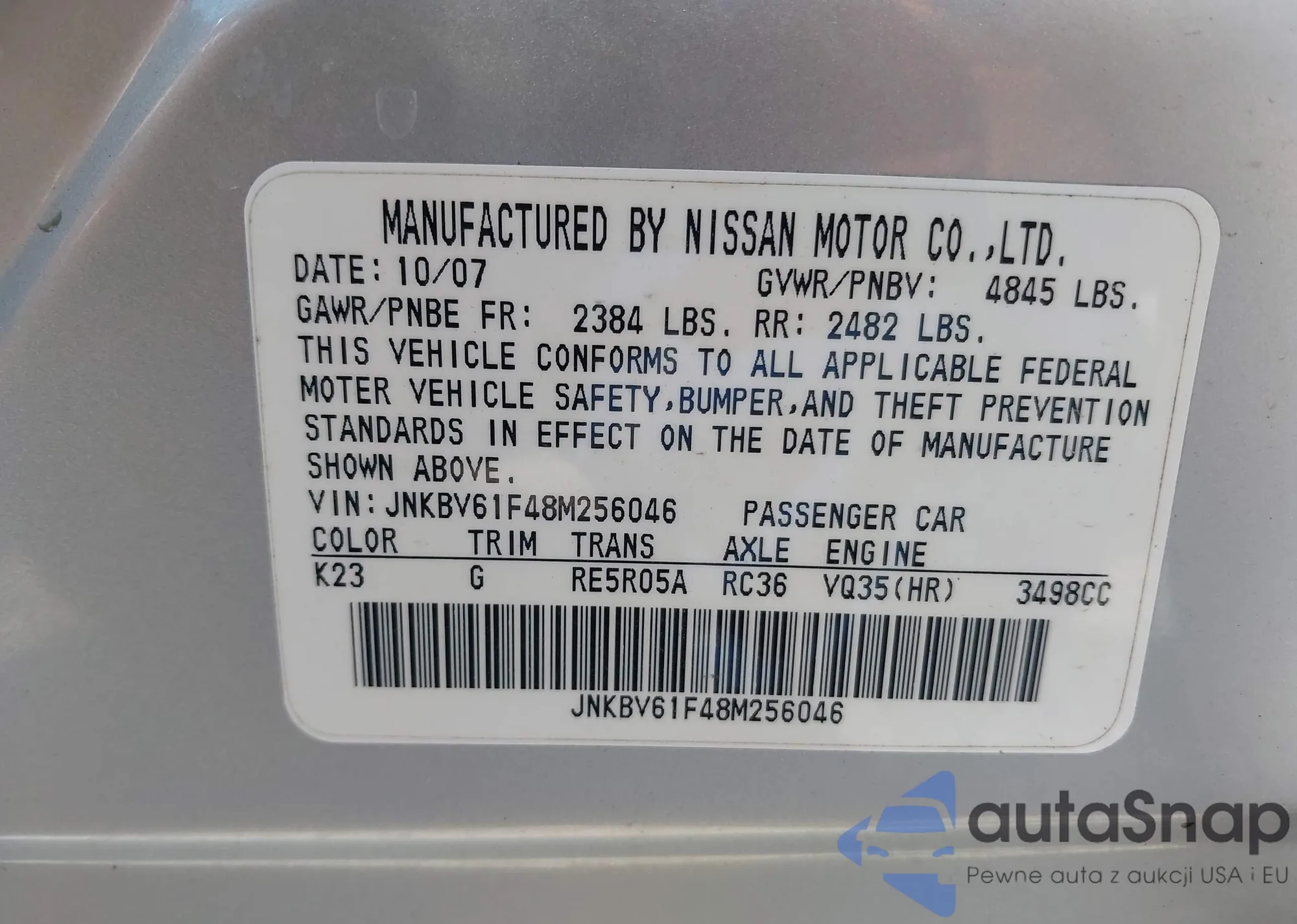LOT: 41984008 VIN: JNKBV61F48M256046