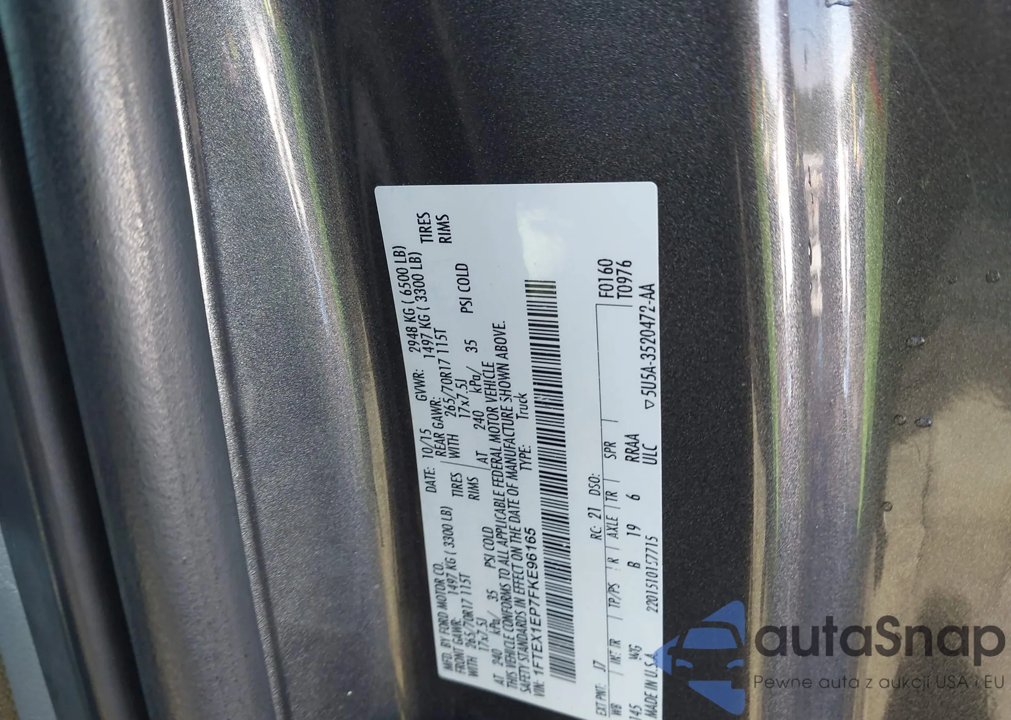 LOT: 42262766 VIN: 1FTEX1EP7FKE96165