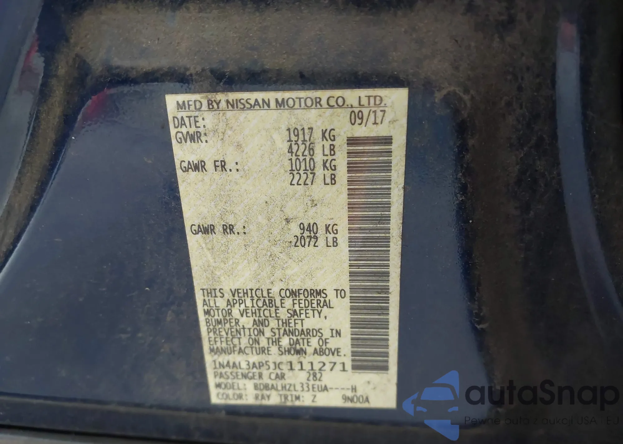 LOT: 42336471 VIN: KM8J3CA26JU697306
