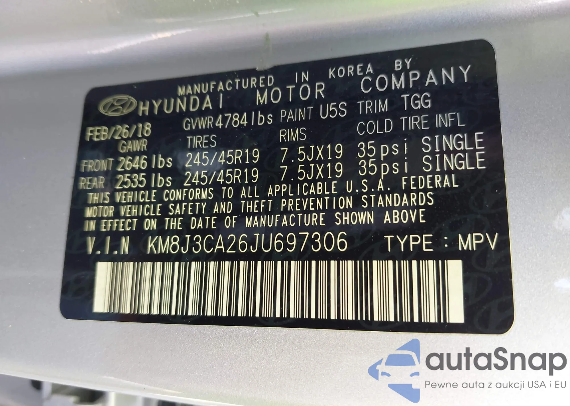 • VIN KM8J3CA26JU697306