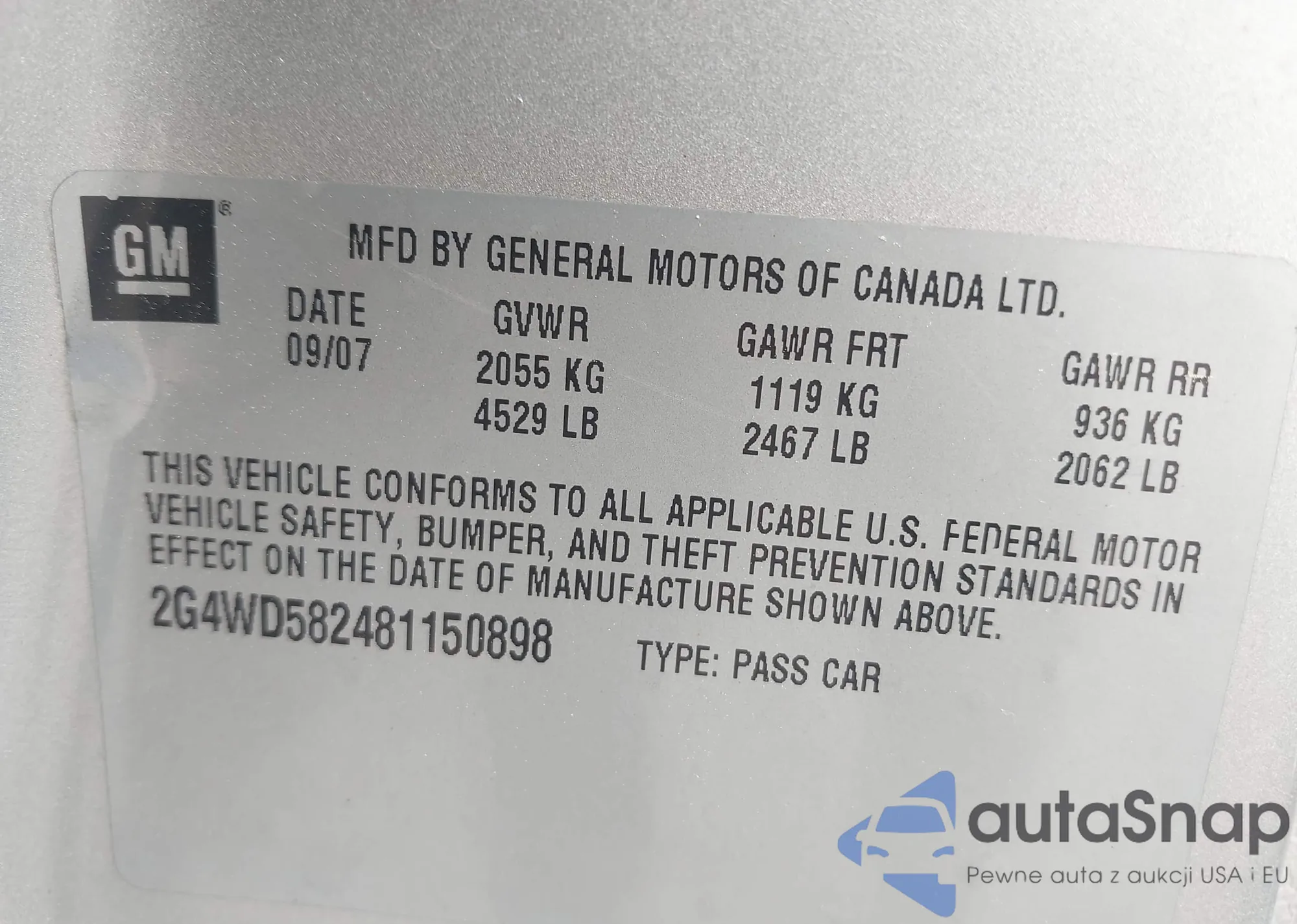 LOT: 41868922 VIN: 2G4WD582481150898