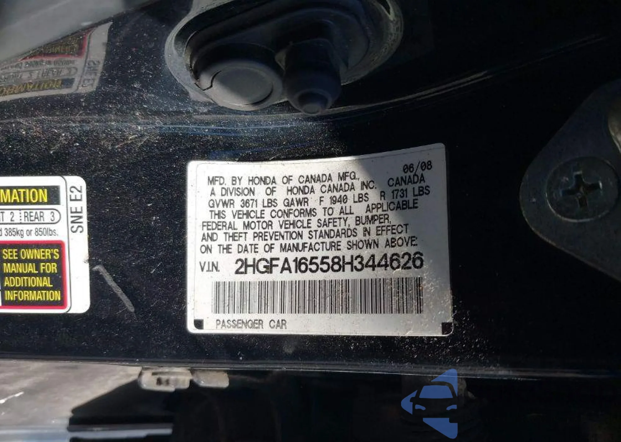 • VIN 2HGFA16558H344626