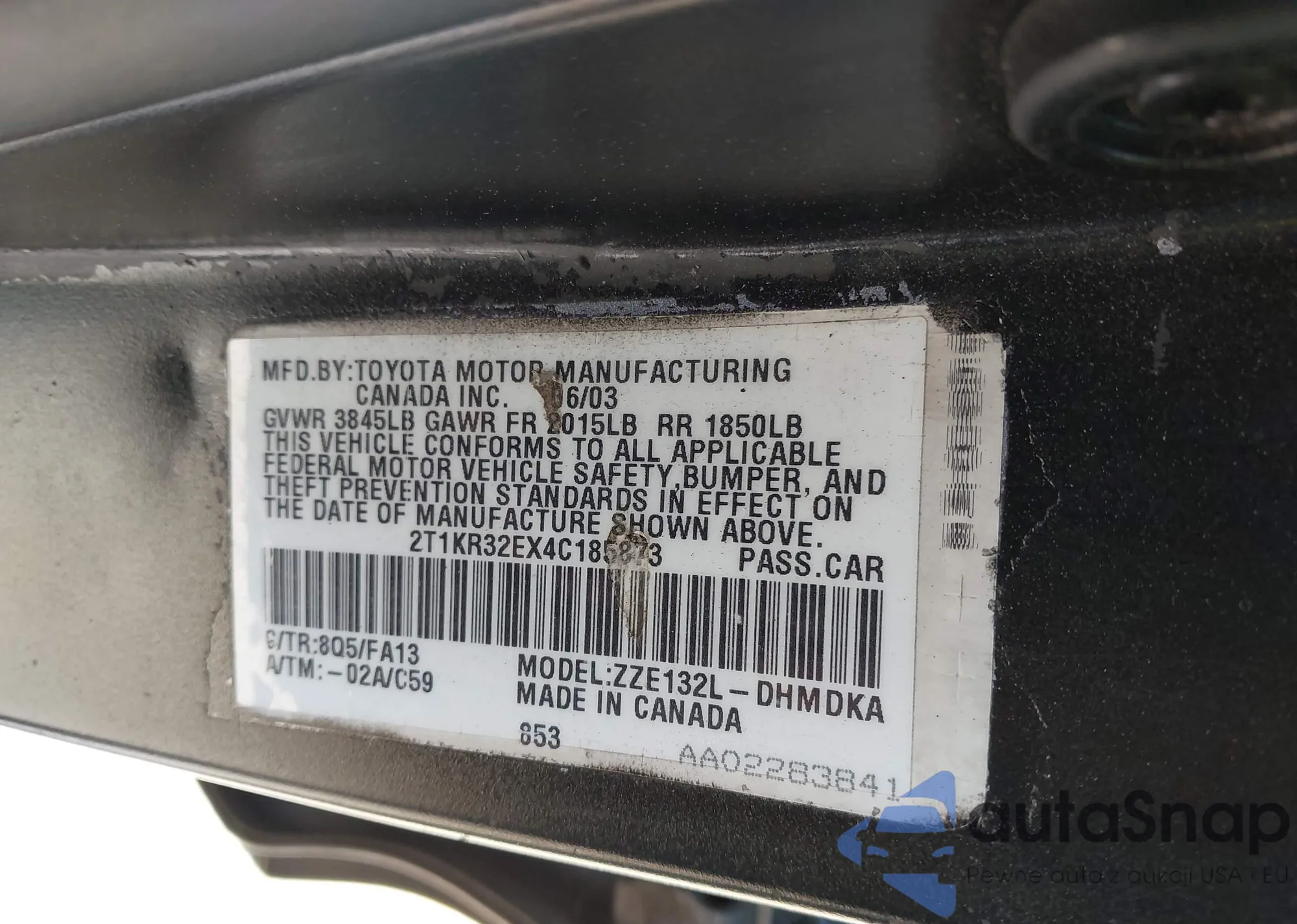 • VIN 2T1KR32EX4C185873