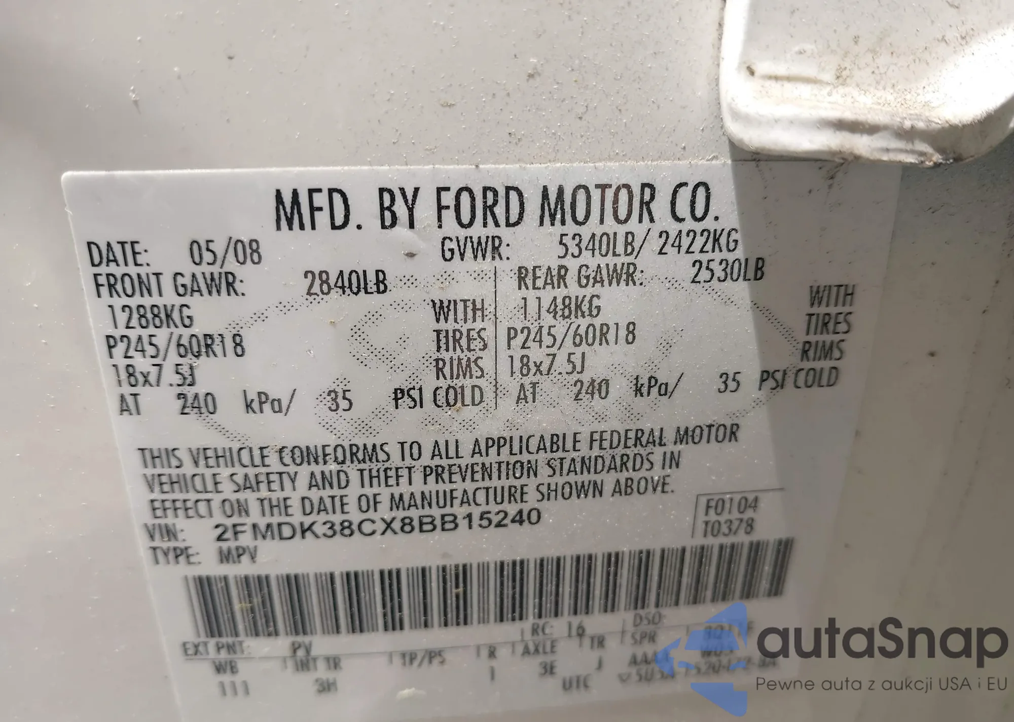 LOT: 41320083 VIN: 2HGFA16558H344626