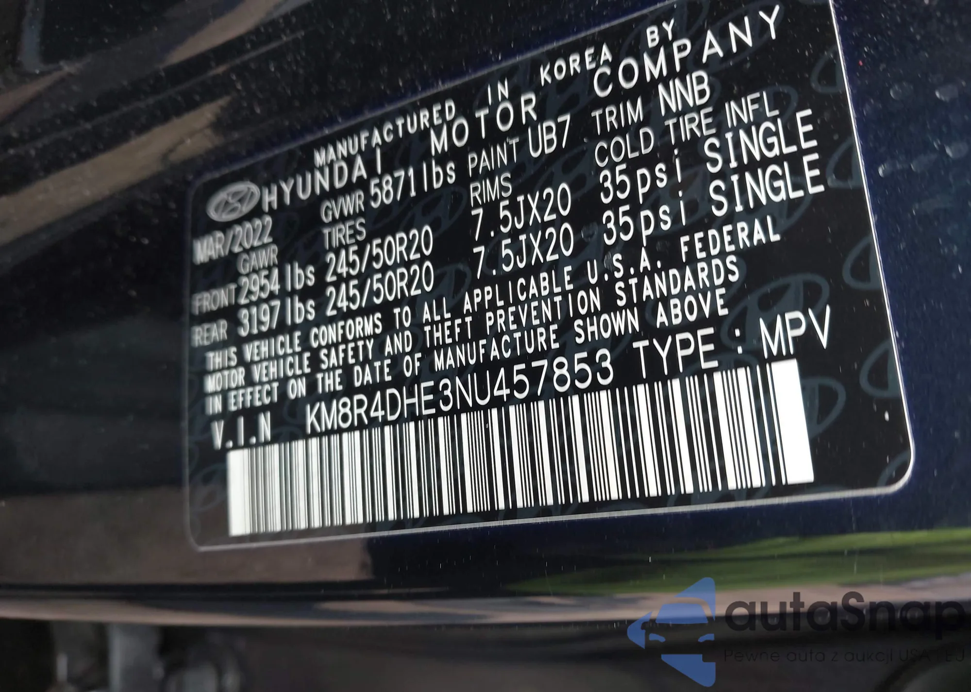 LOT: 42022984 VIN: KMHLL4DG8SU938824