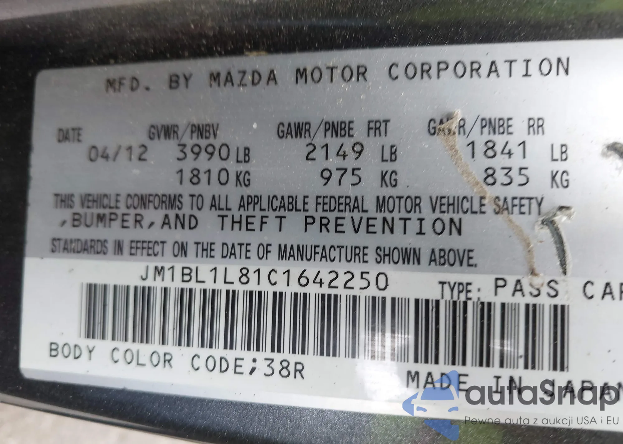 LOT: 42130059 VIN: JM1BL1L81C1642250