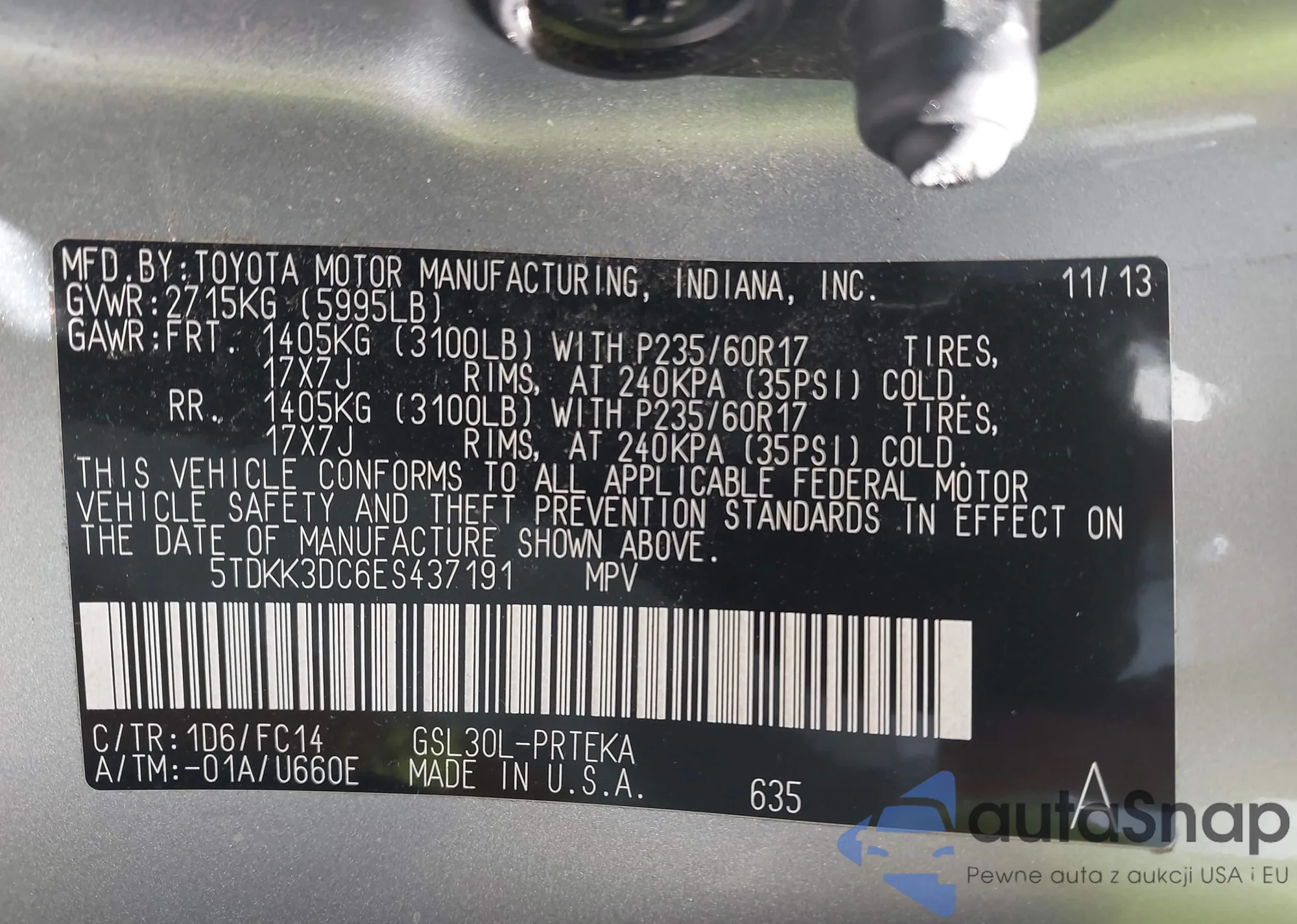 • VIN 5TDKK3DC6ES437191