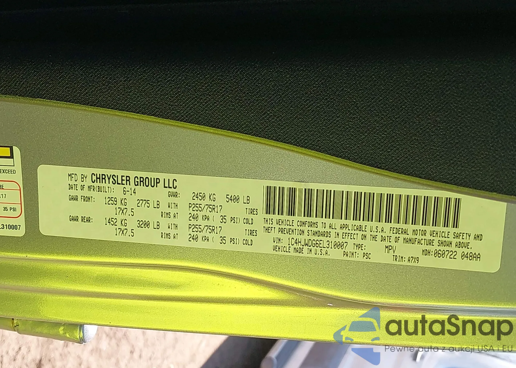 • VIN 1C4HJWDG6EL310007