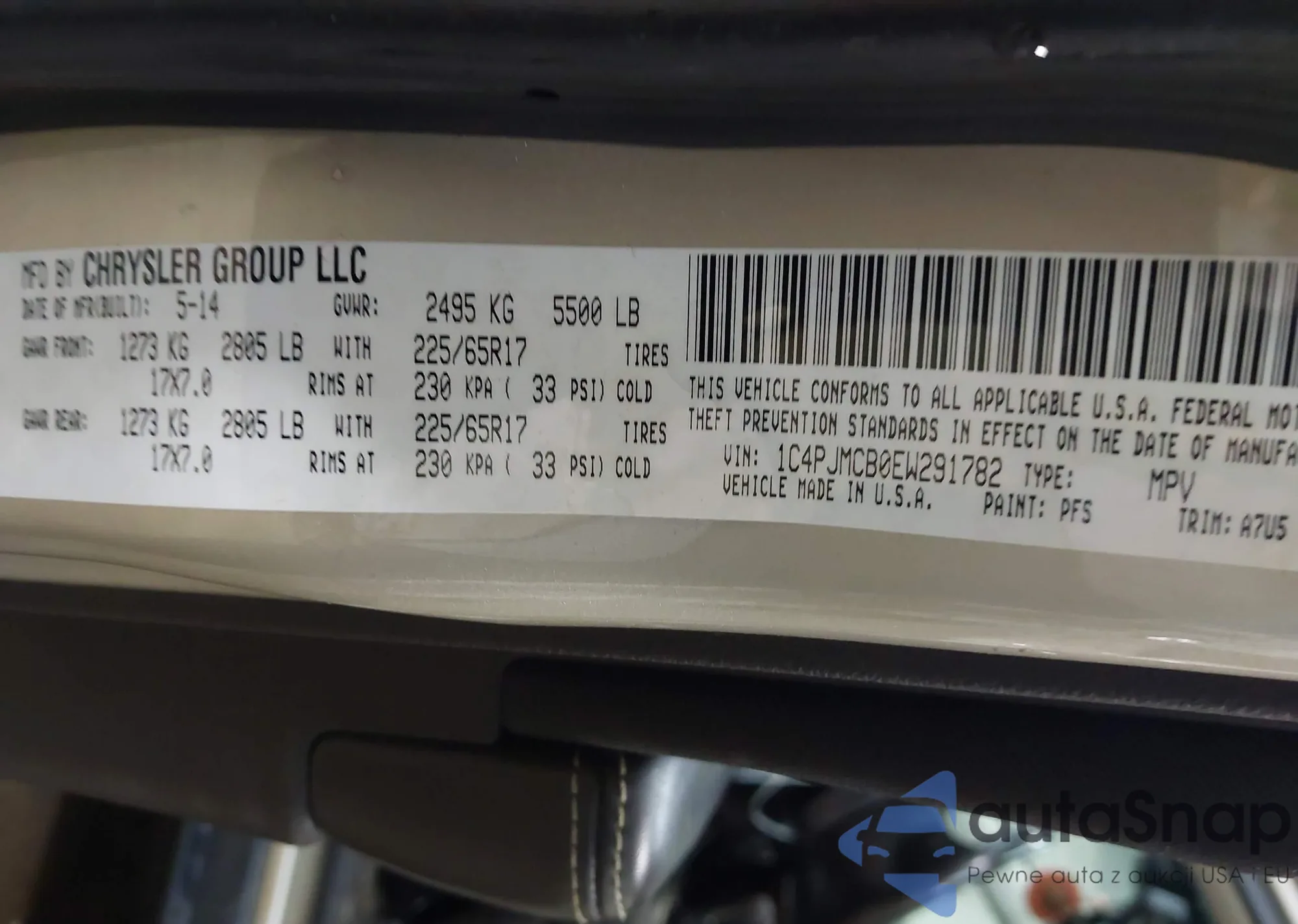 LOT: 42124092 VIN: 1C4PJMCB0EW291782
