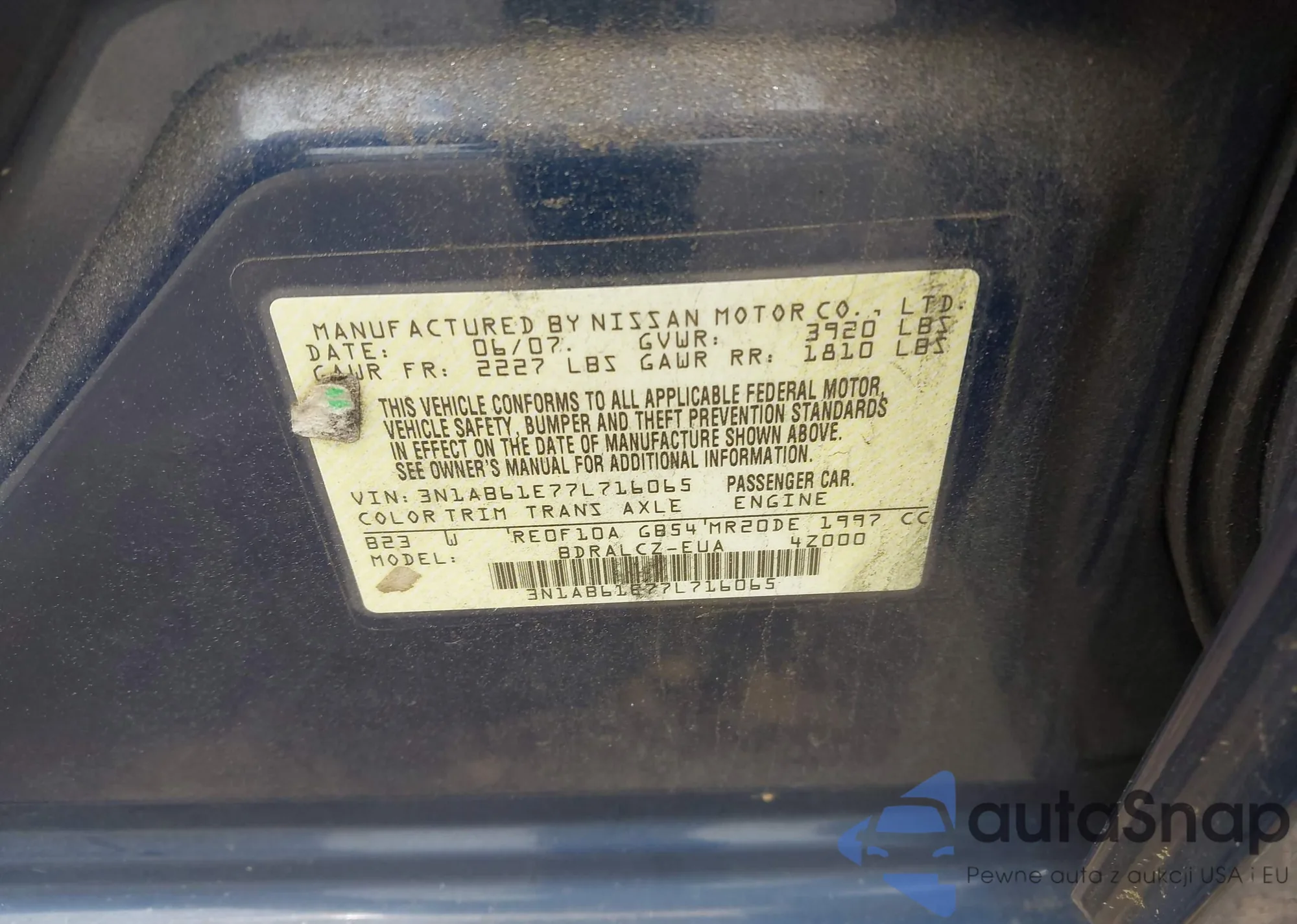 • VIN 3N1AB61E77L716065