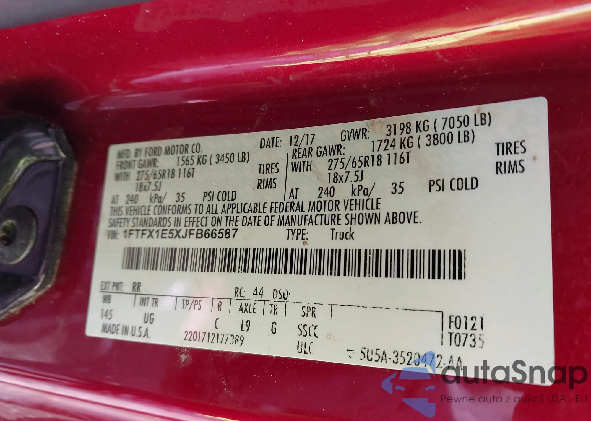 • VIN 1FTFX1E5XJFB66587