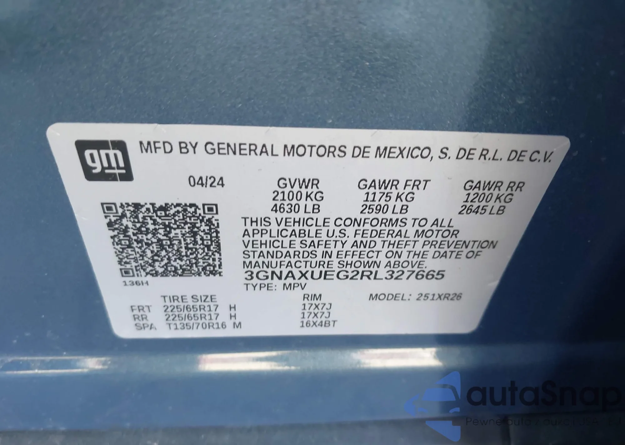 LOT: 41903485 VIN: 3GNAXUEG2RL327665