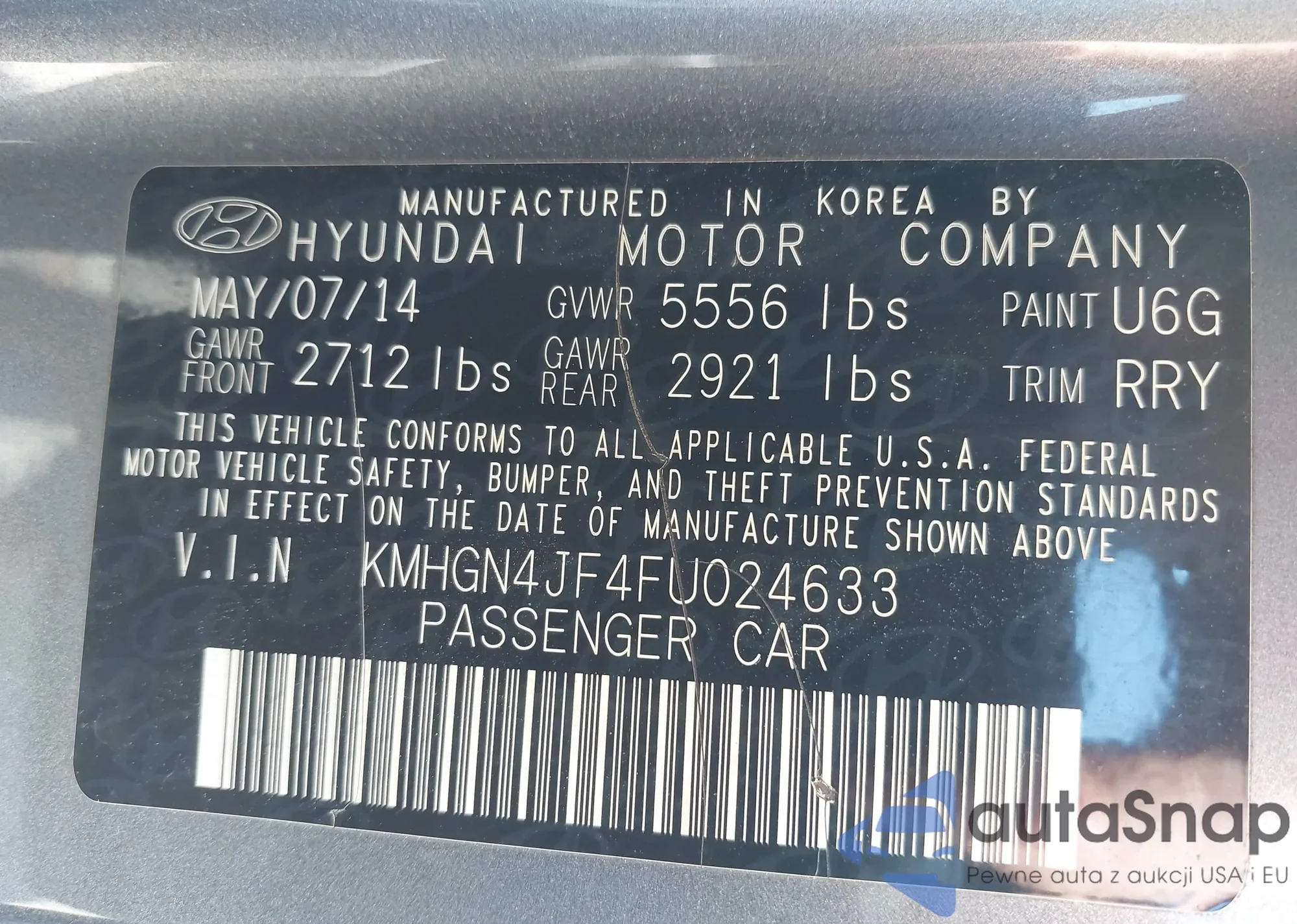 LOT: 42187544 VIN: KMHGN4JF4FU024633