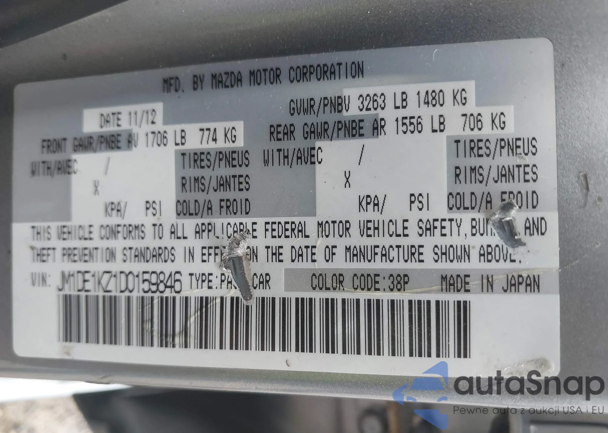 LOT: 42372007 VIN: JM1DE1KZ1D0159846
