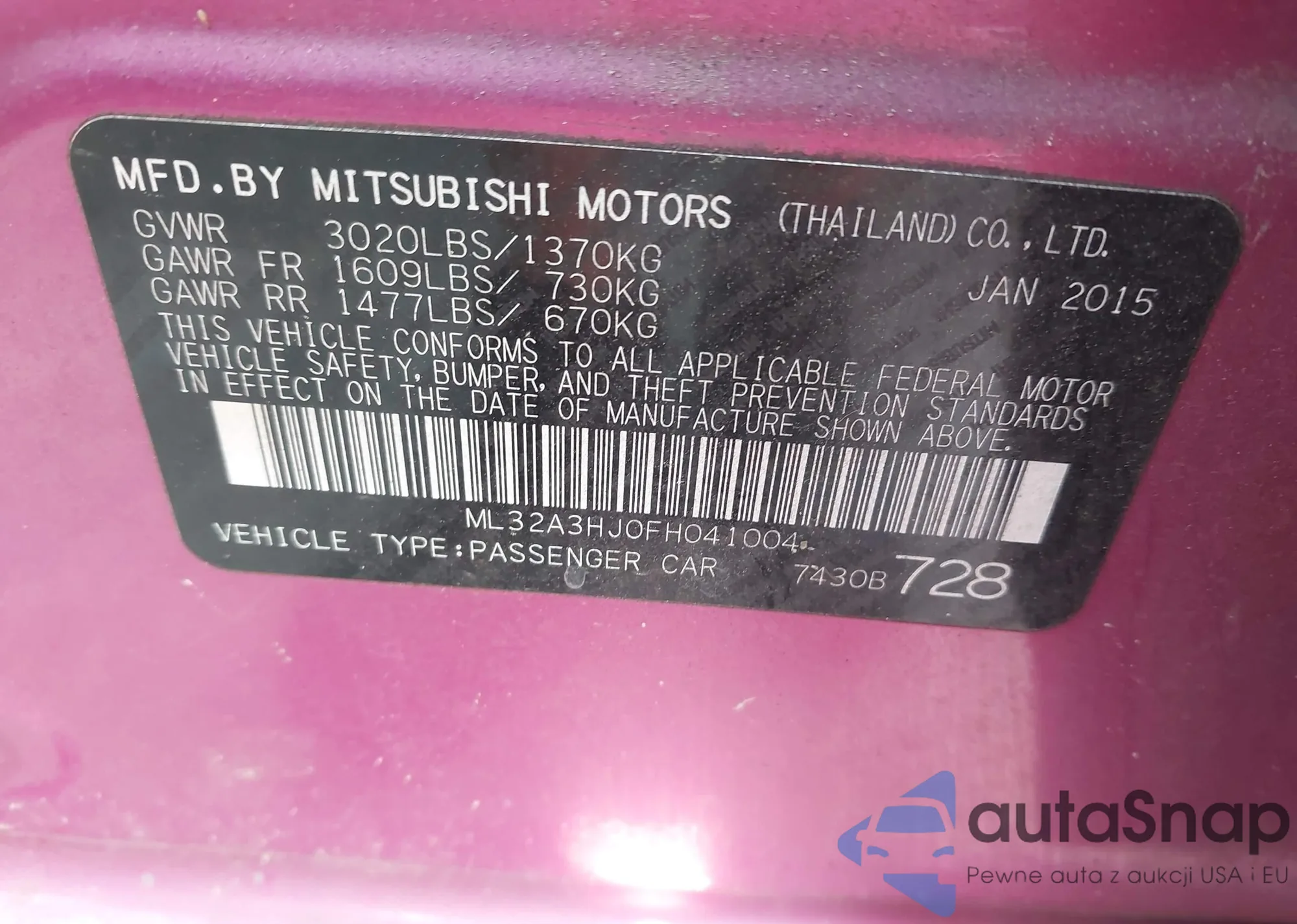 LOT: 42408129 VIN: ML32A3HJ0FH041004