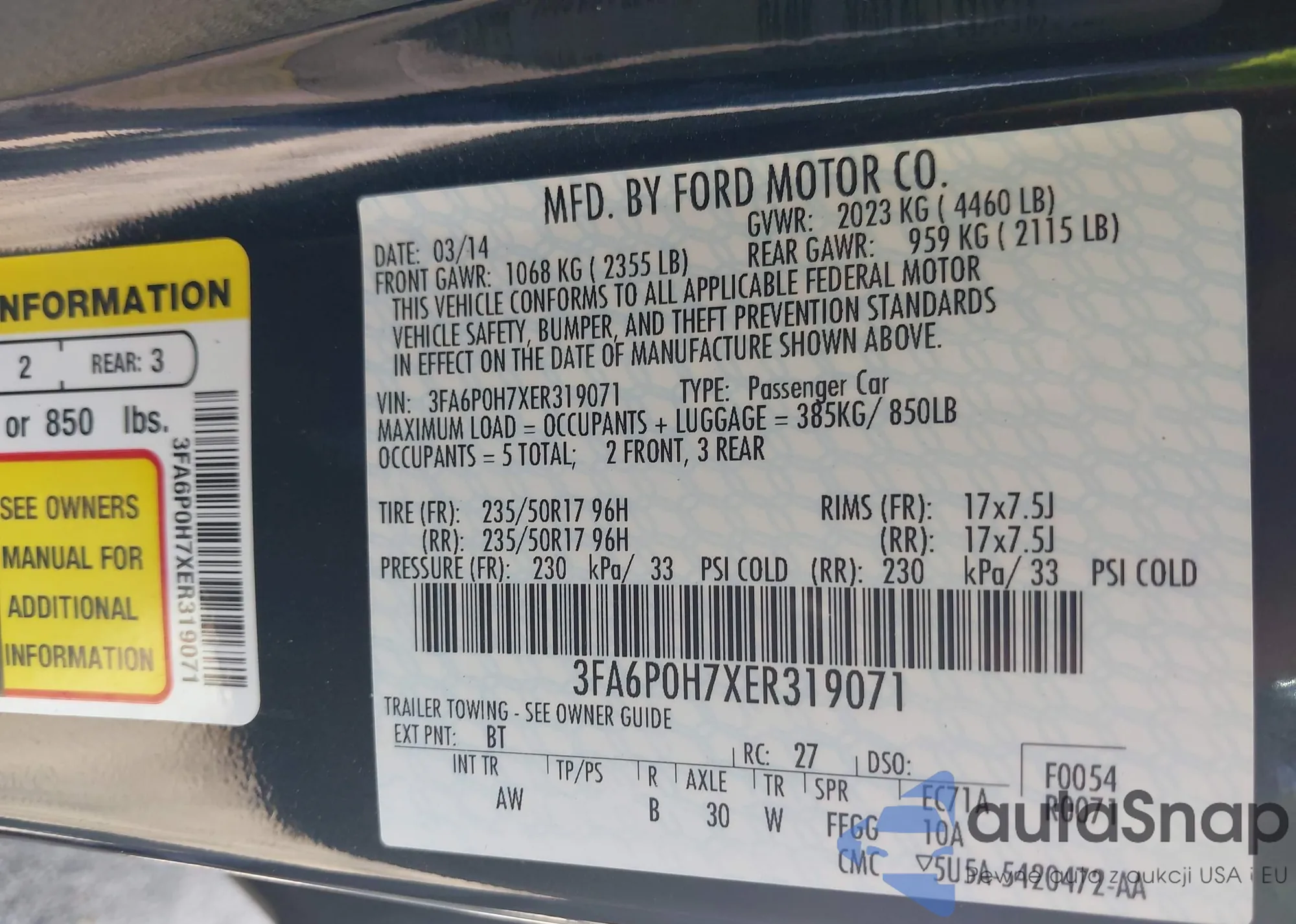 • VIN 3FA6P0H7XER319071