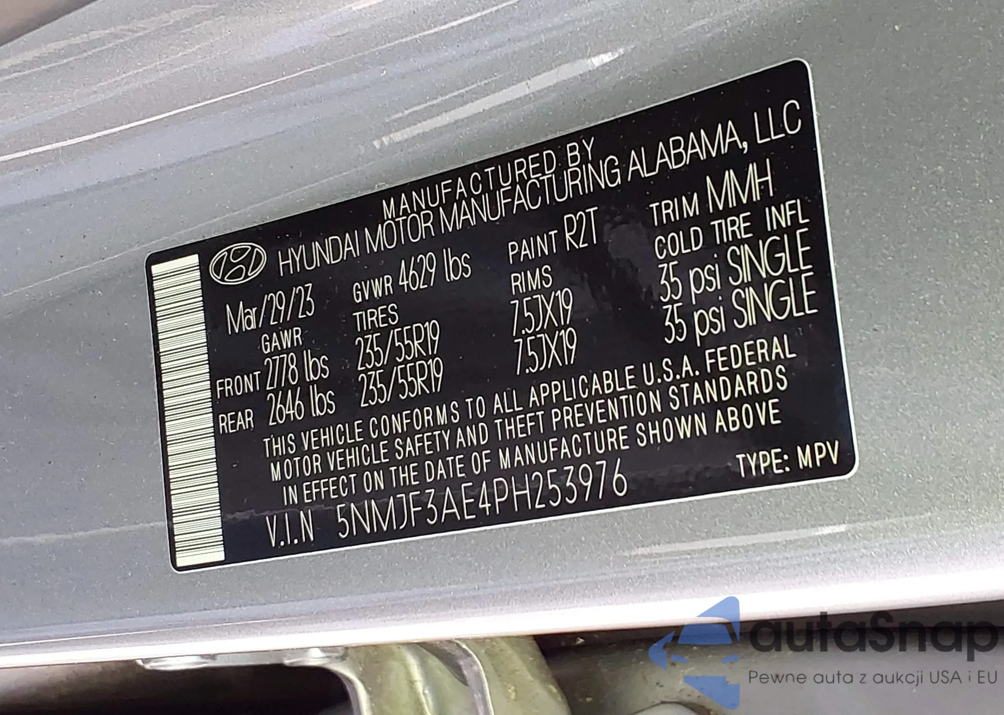 • VIN KMHLS4AG1PU415658