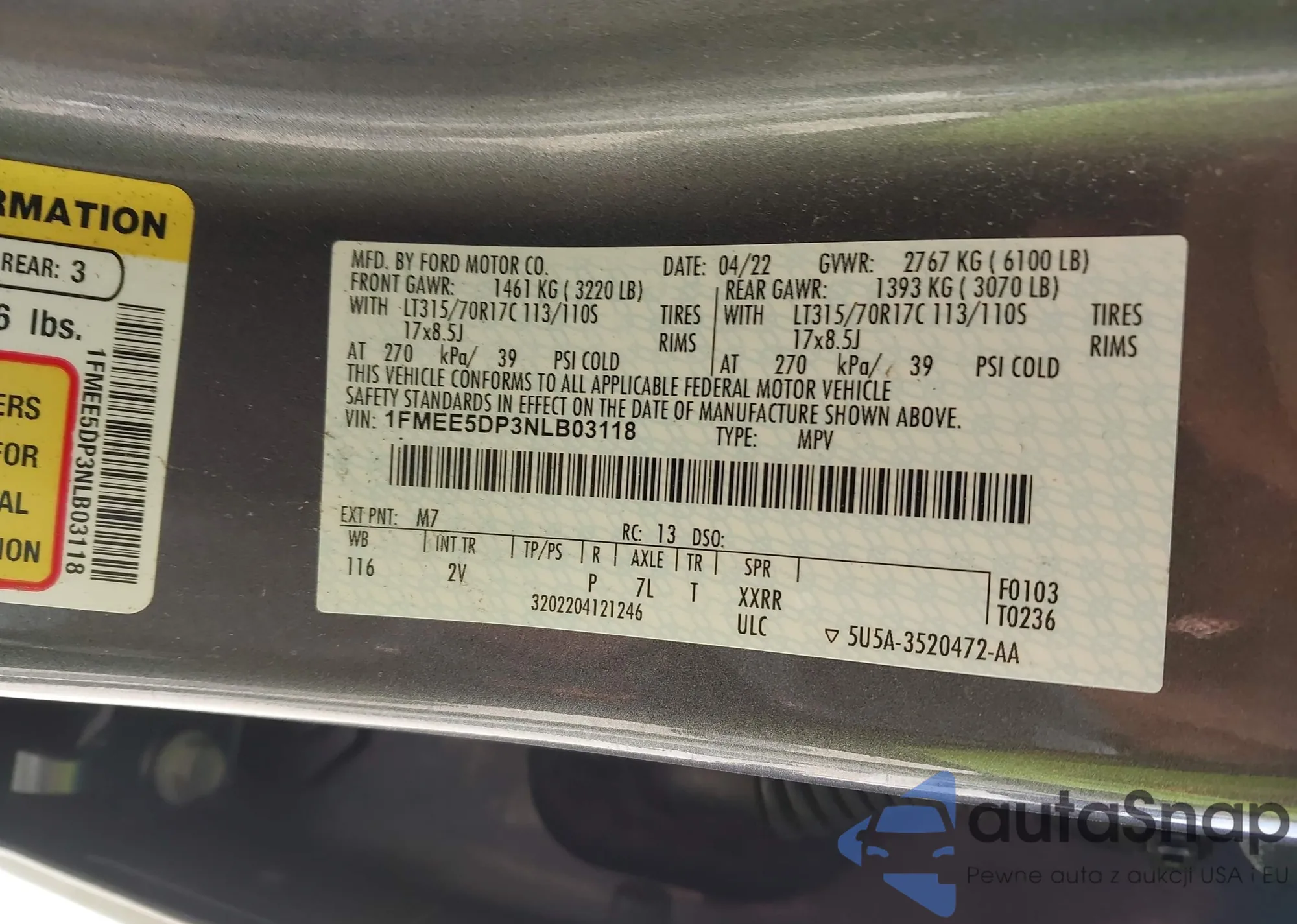 • VIN 1FMSK7DHXNGB35329