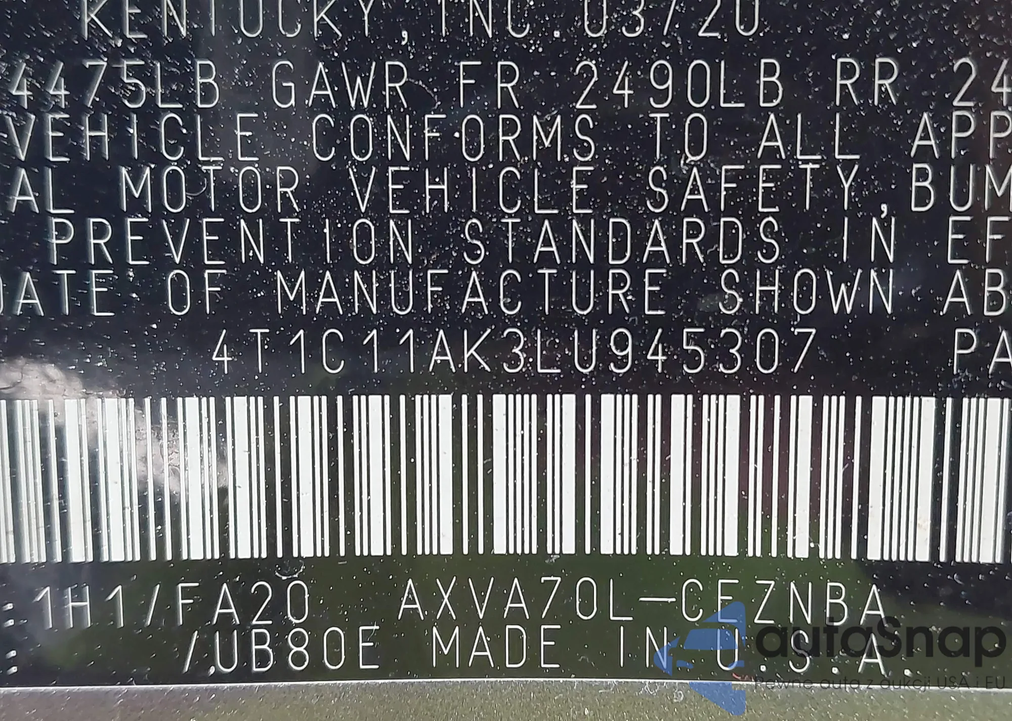 • VIN KNDCE3LC9H5038363