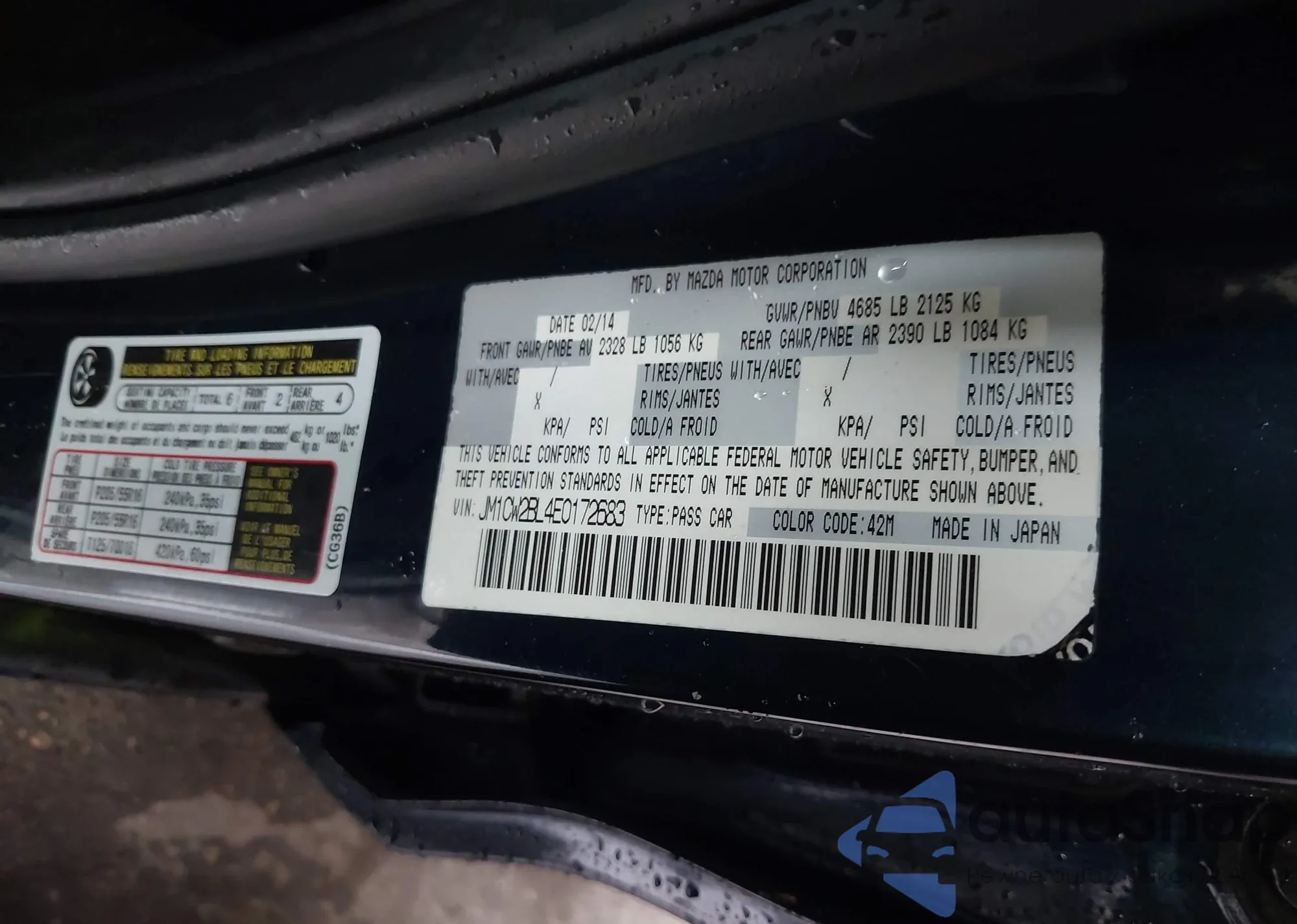 LOT: 42235768 VIN: JM1CW2BL4E0172683