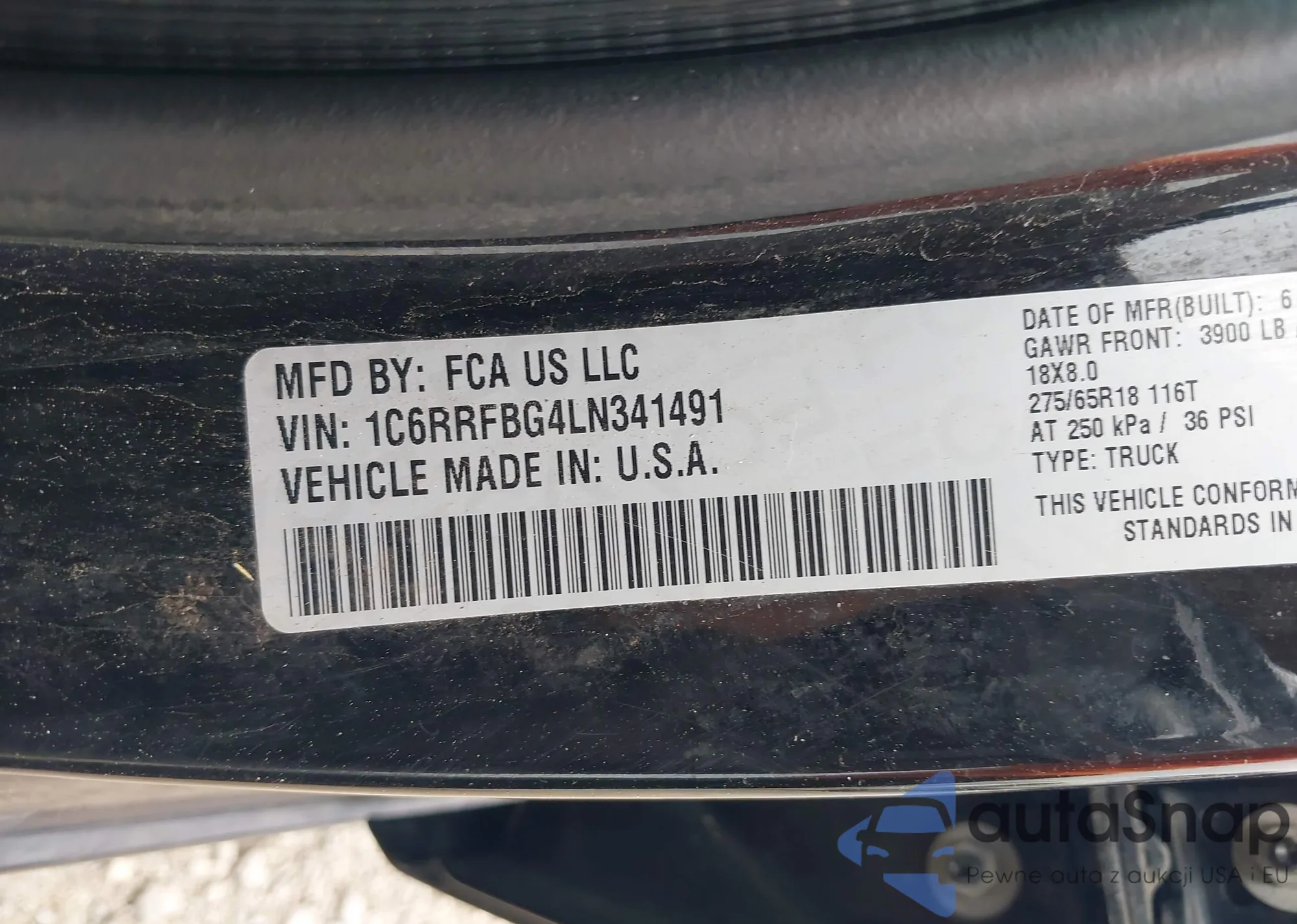 LOT: 42344944 VIN: 1C6RRFBG4LN341491