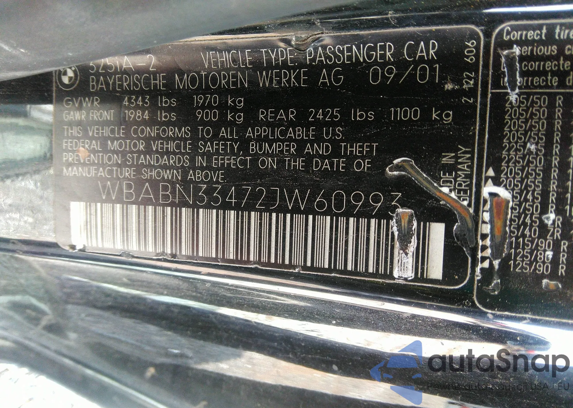 LOT: 42190189 VIN: WBABN33472JW60993