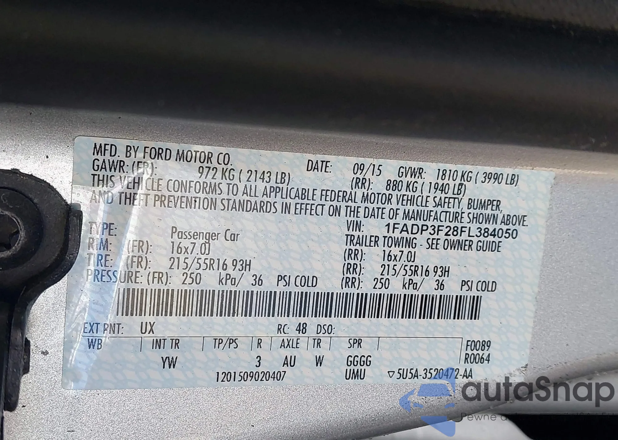 LOT: 42220619 VIN: 1FADP3F28FL384050