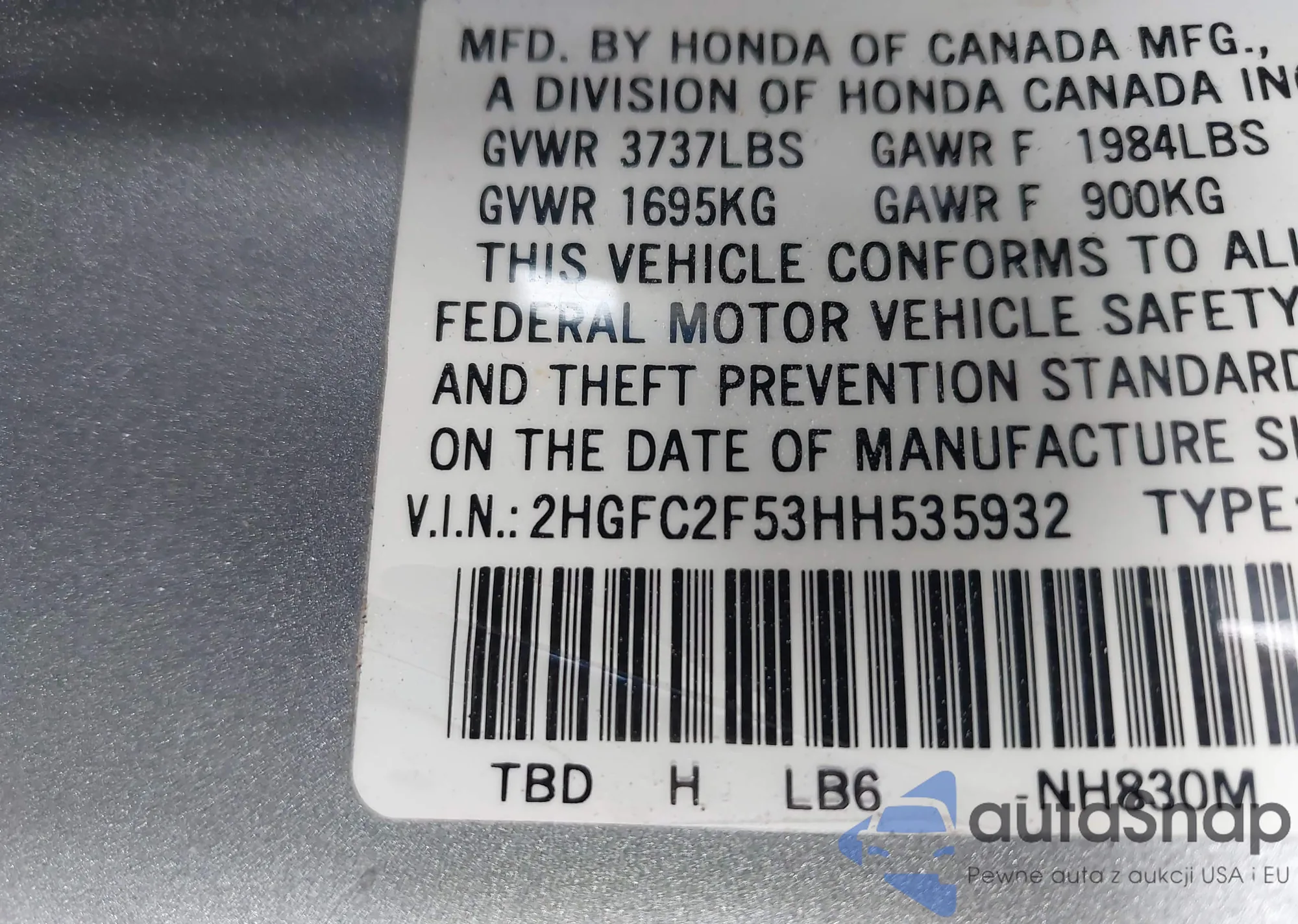 • VIN 2HGFC2F53HH535932