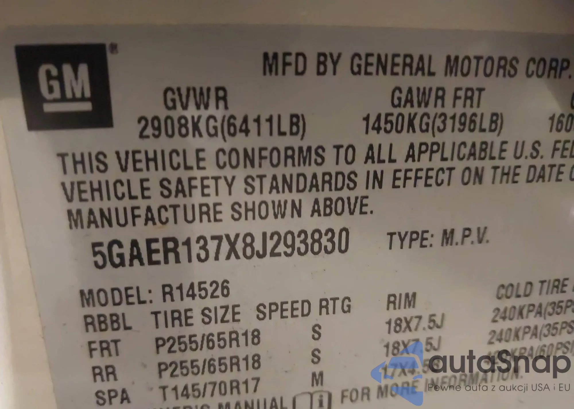 LOT: 41300366 VIN: 5GAER137X8J293830