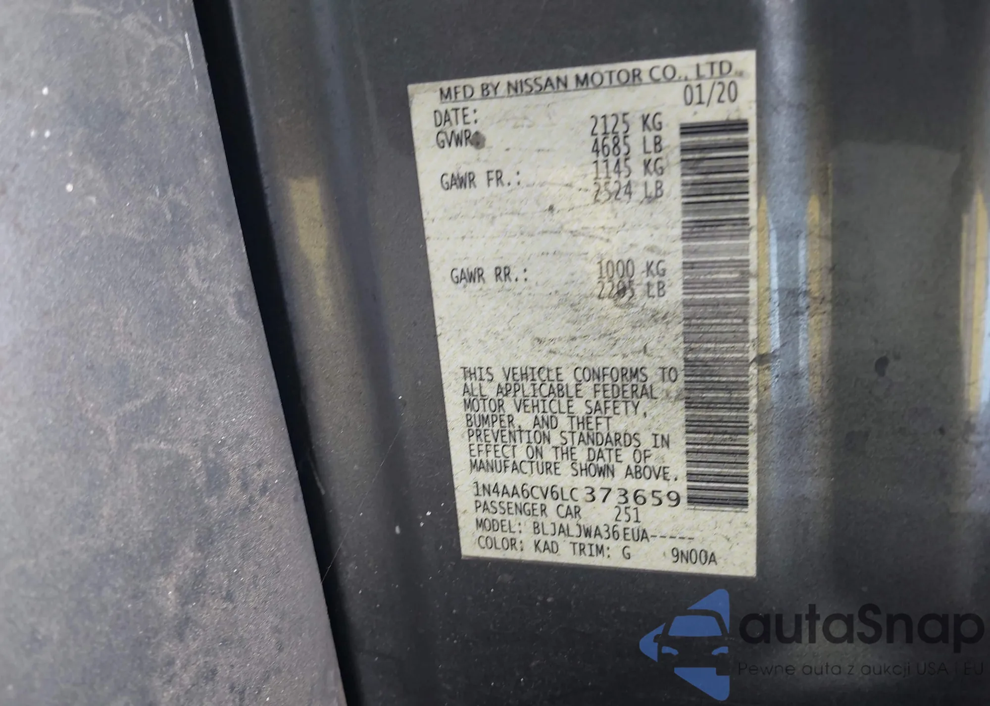 • VIN 1N4AA6CV6LC373659
