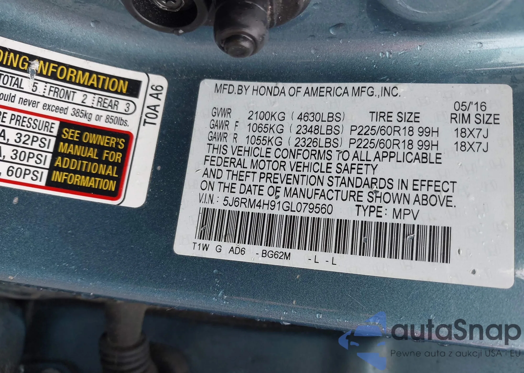 • VIN 5J6RM3H77CL034657
