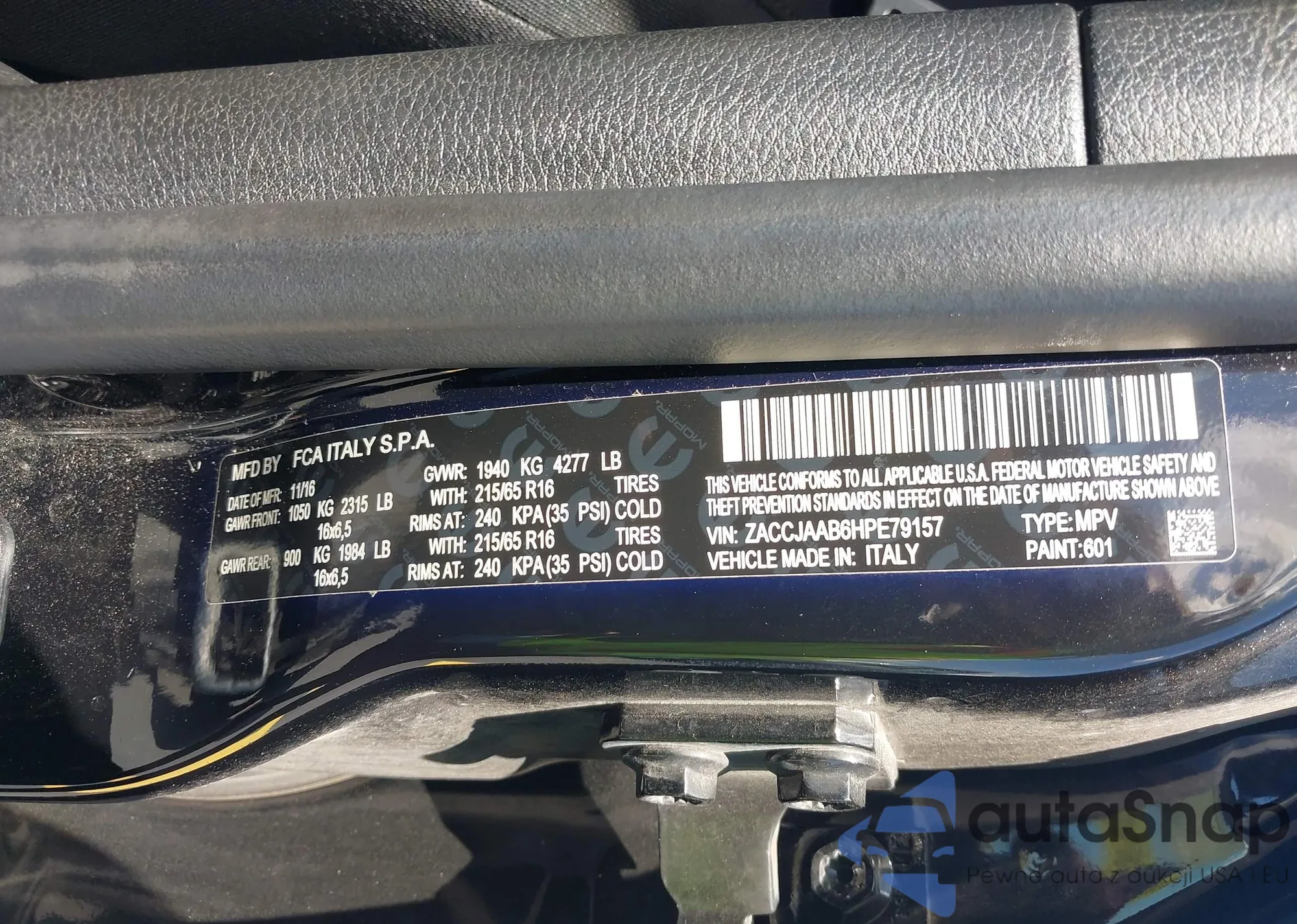 • VIN ZACCJAAB6HPE79157
