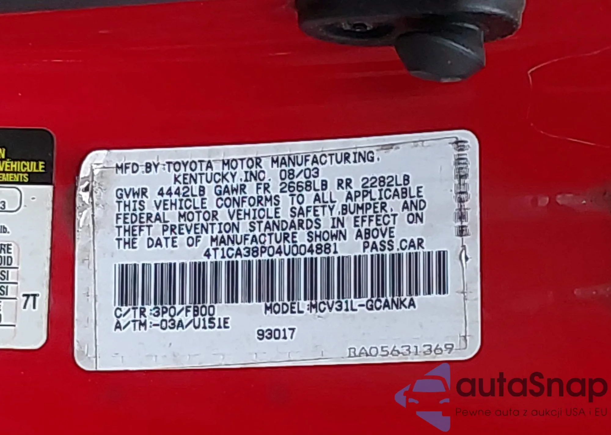 • VIN 4T1CA38P04U004881