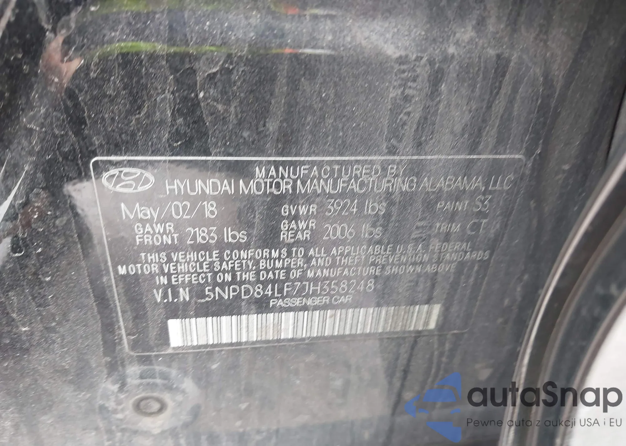 LOT: 42373537 VIN: 5NPD84LF7JH358248