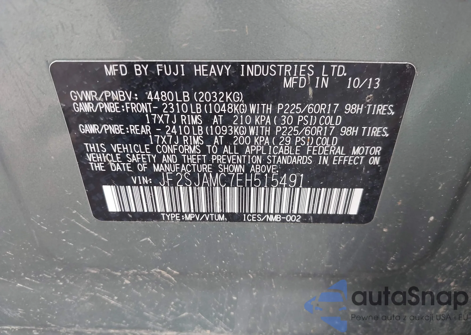 • VIN JF2SJAMC7EH515491
