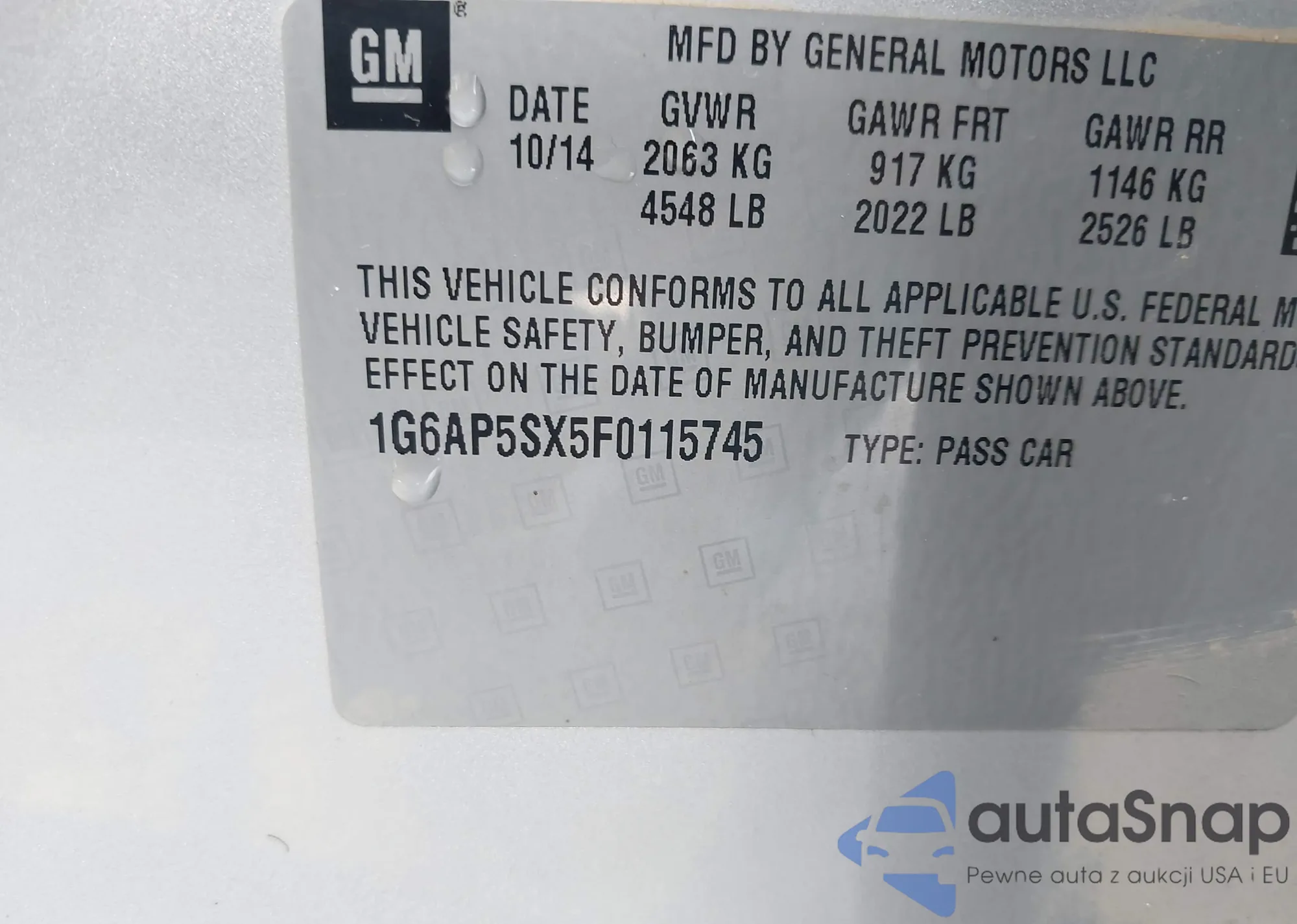 • VIN 1G6AP5SX5F0115745
