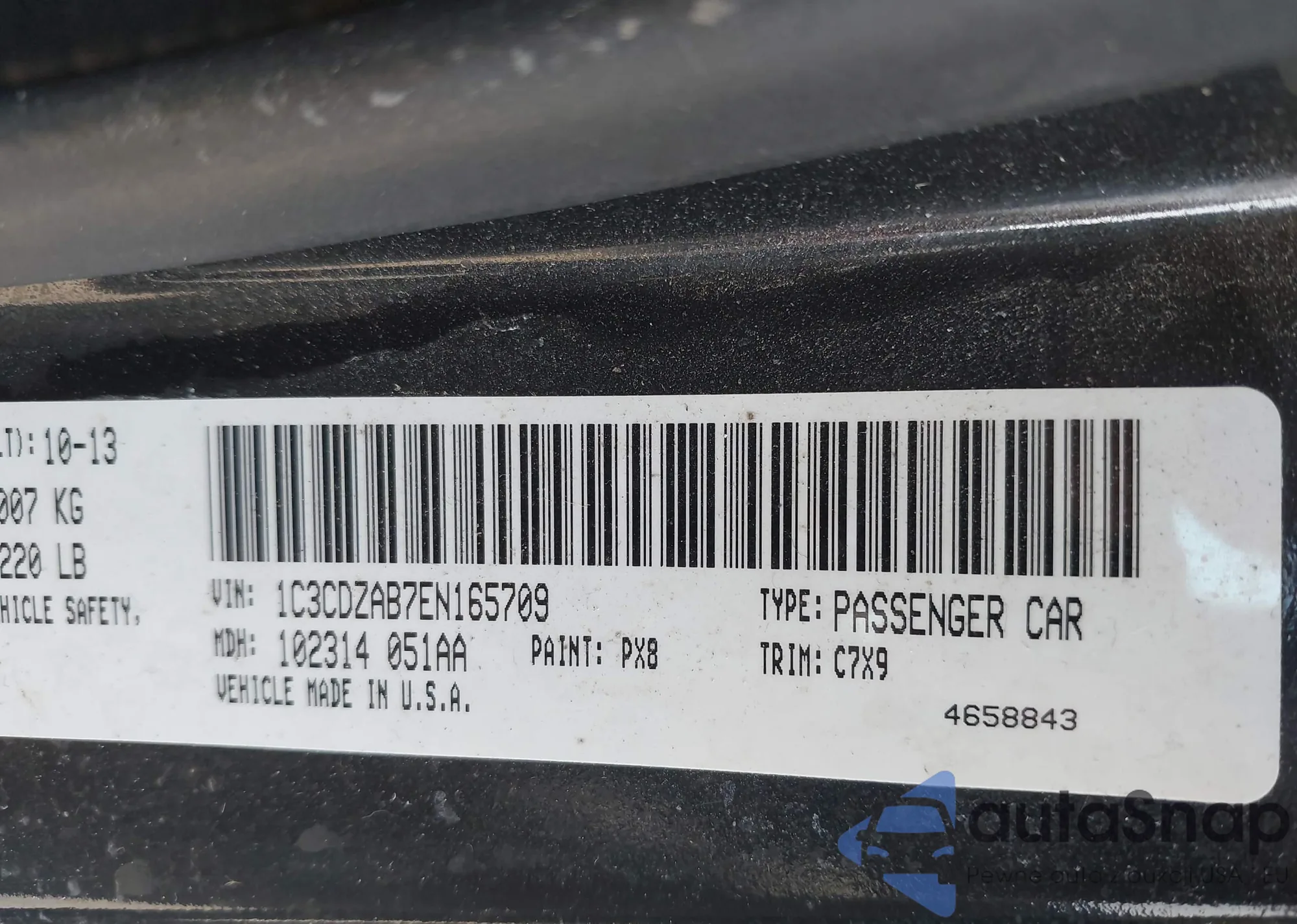 • VIN 1C3CDZAB7EN165709