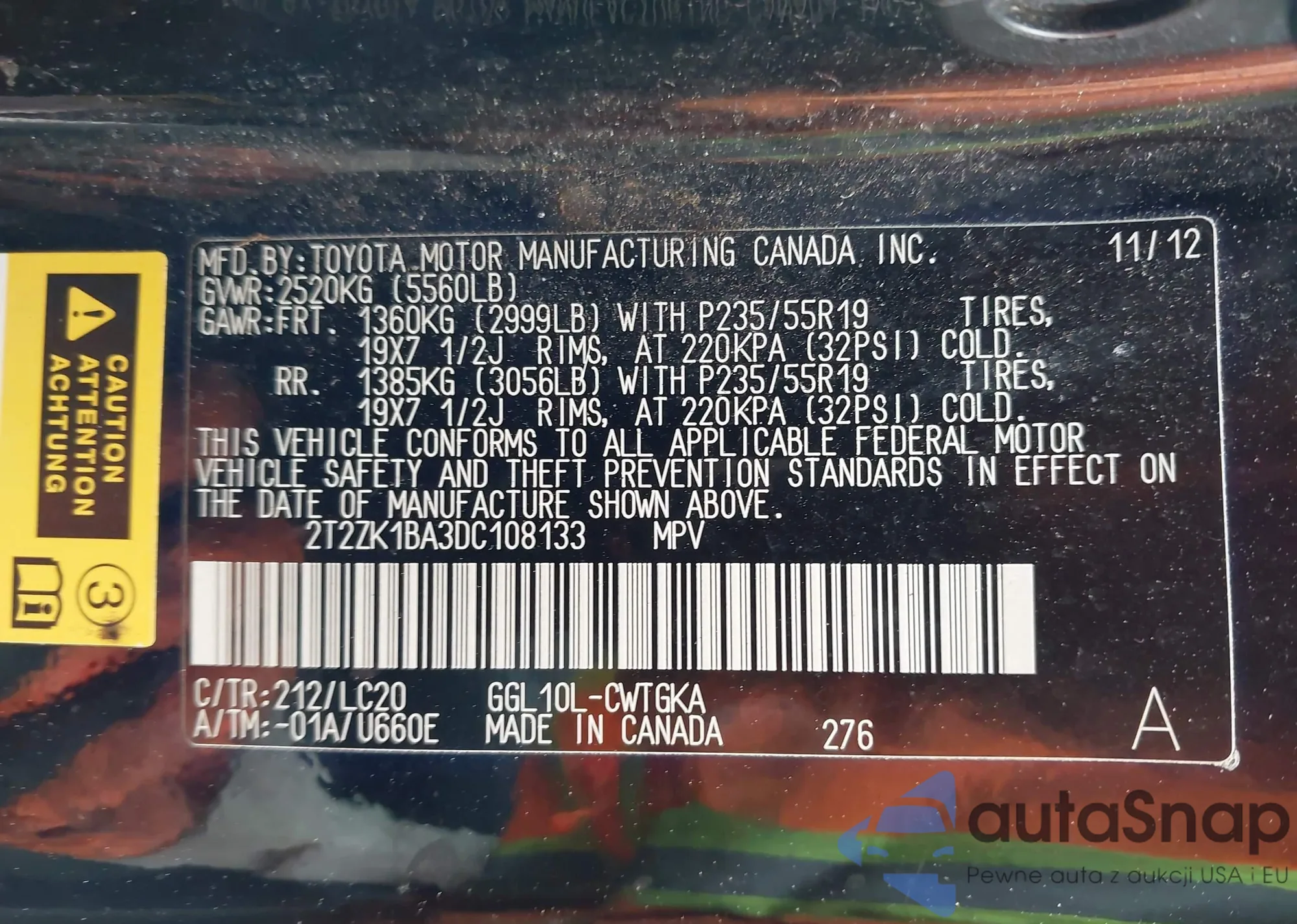 • VIN 4T1BF1FK9CU107630