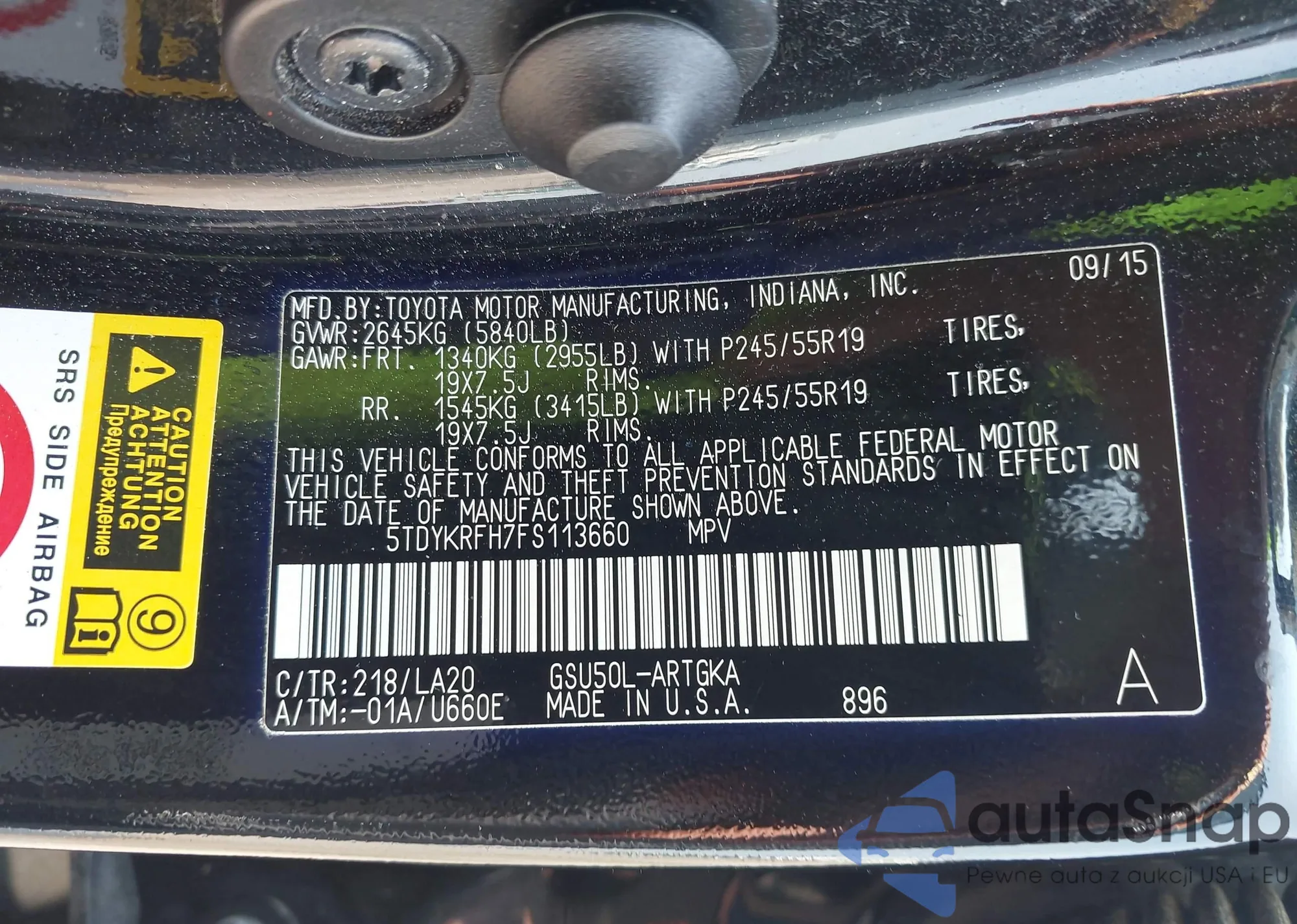 LOT: 42417758 VIN: 5TDYKRFH7FS113660