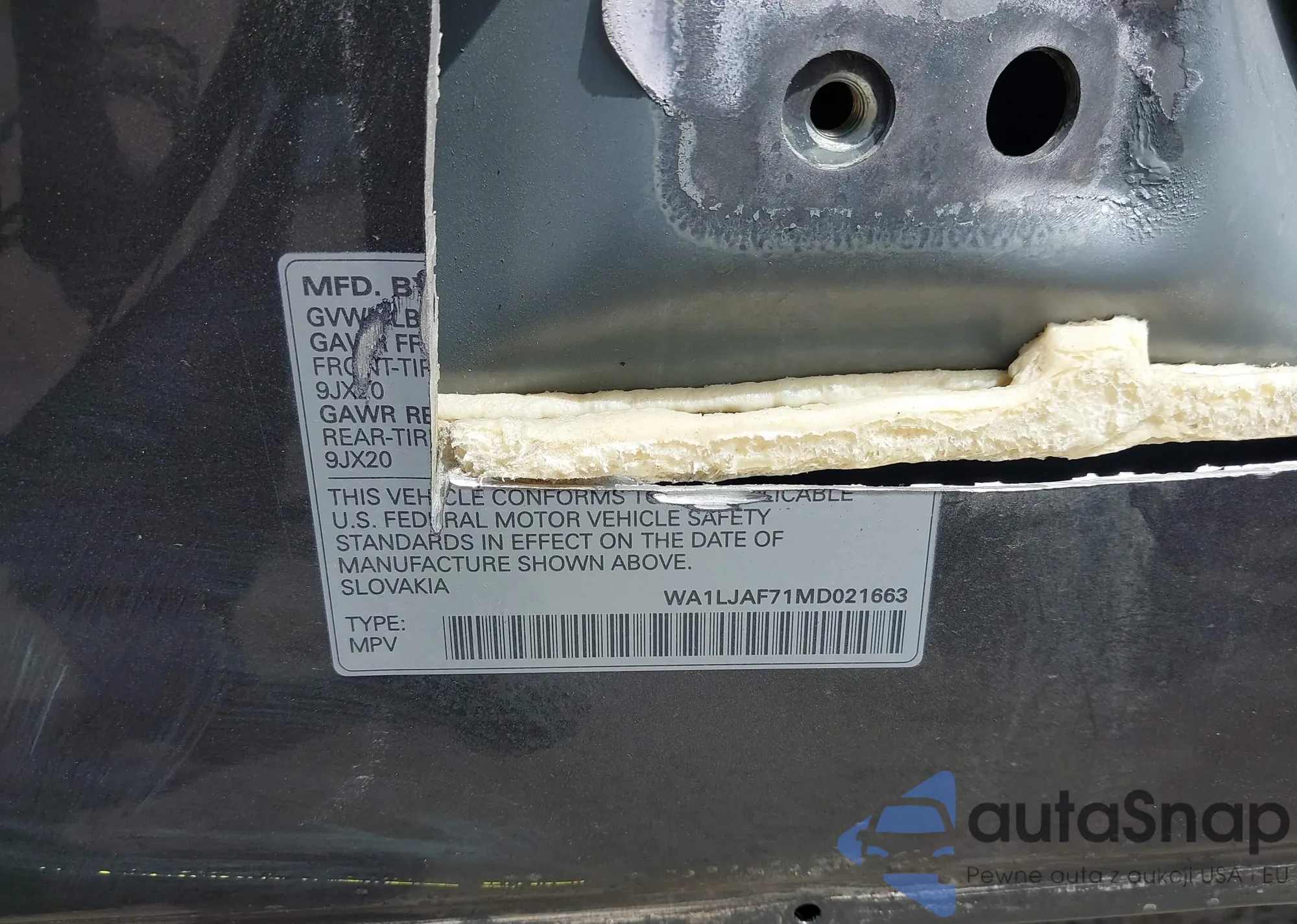 LOT: 42059586 VIN: WAUBNCF57JA017059