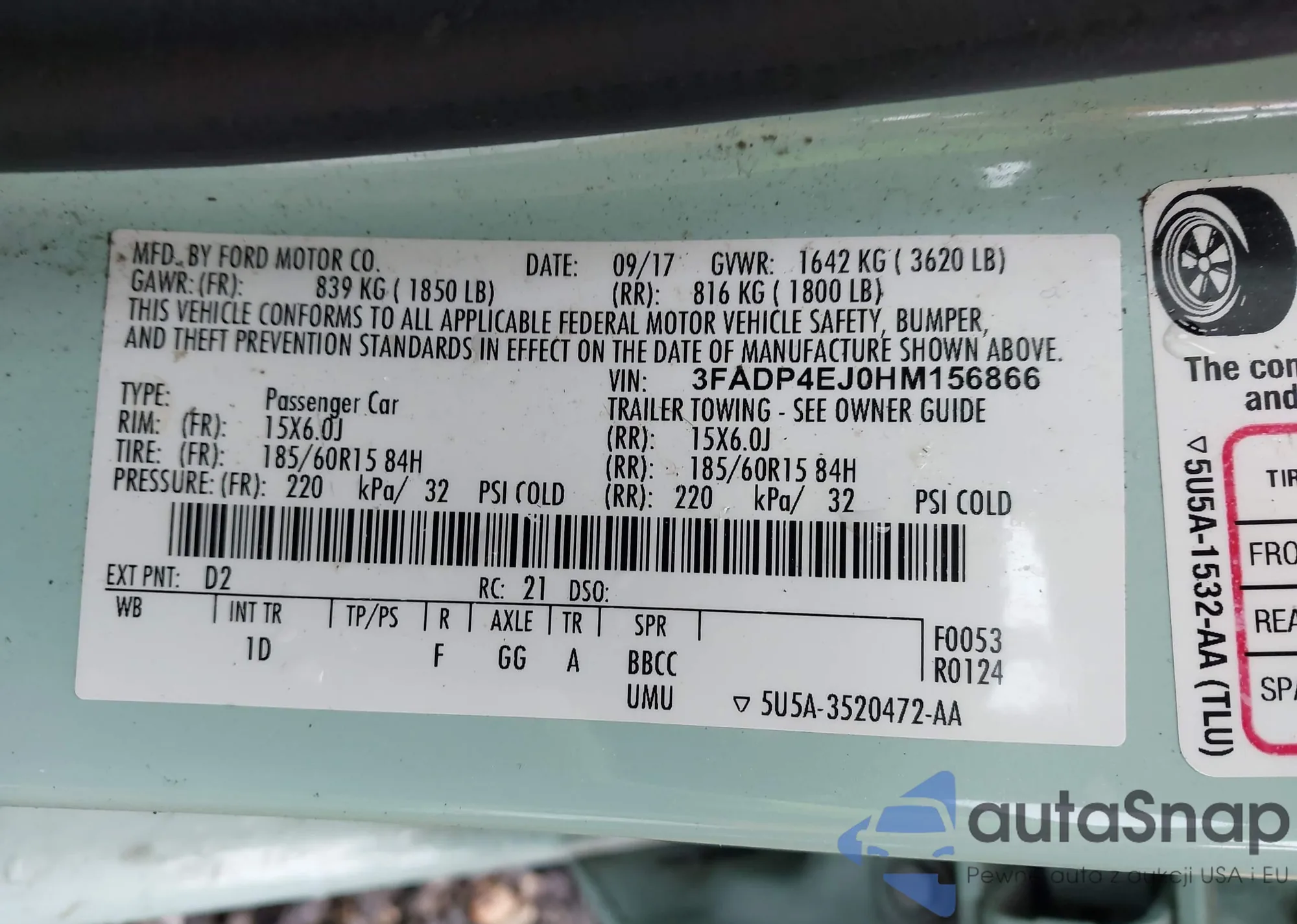 • VIN 3FADP4EJ0HM156866
