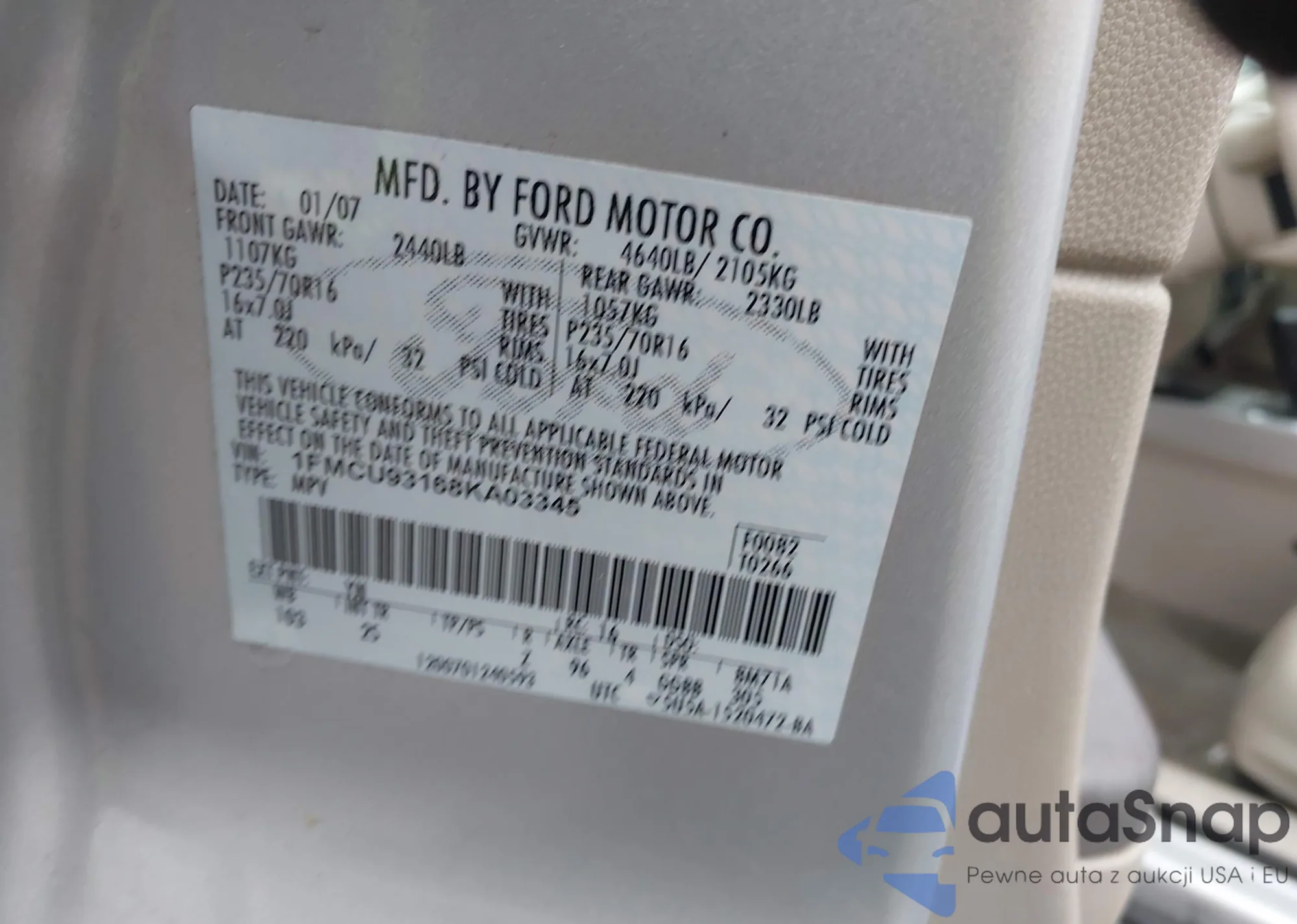 LOT: 42253130 VIN: 1FMCU93168KA03345