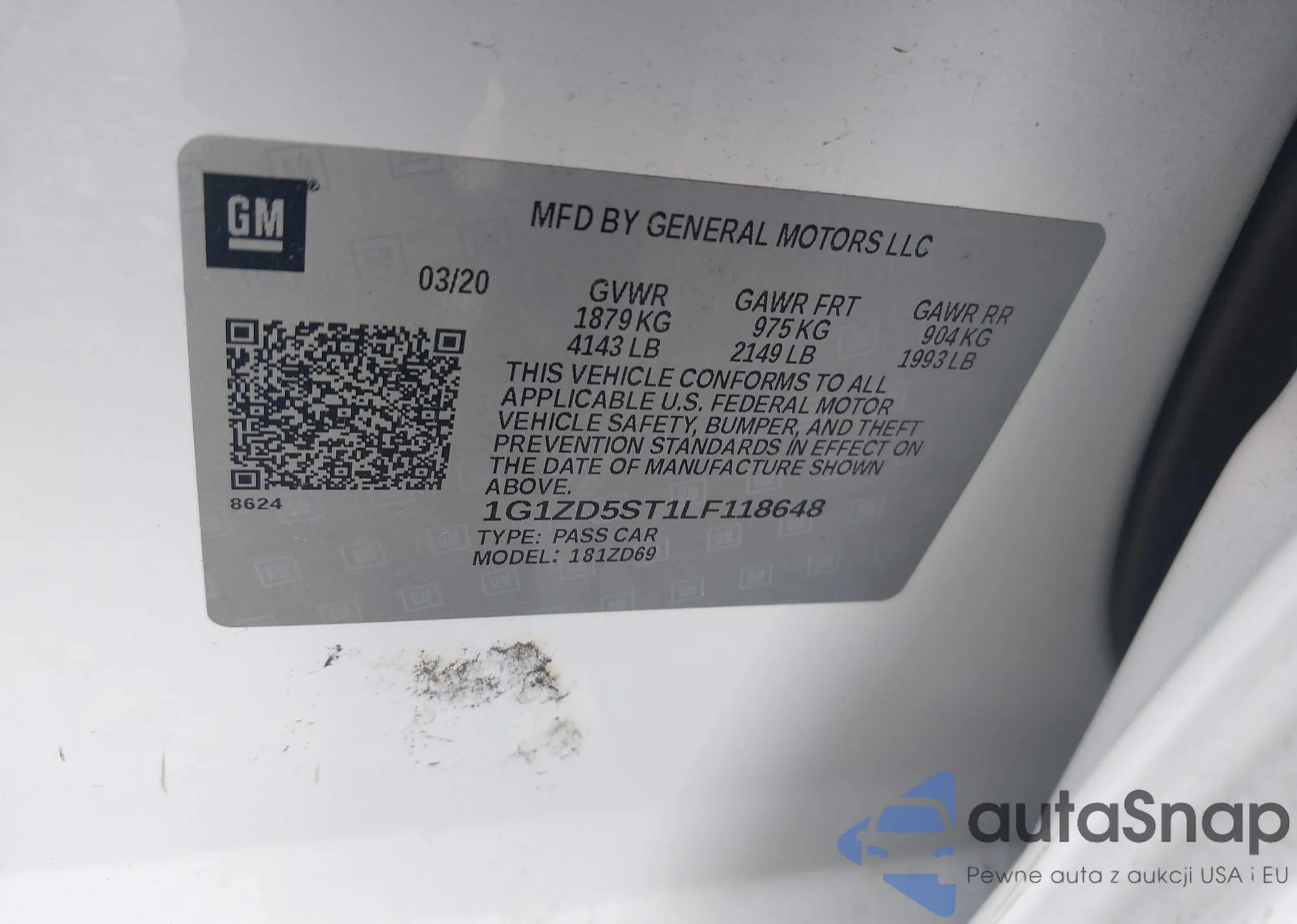 LOT: 42345456 VIN: 1G1ZD5ST1LF118648