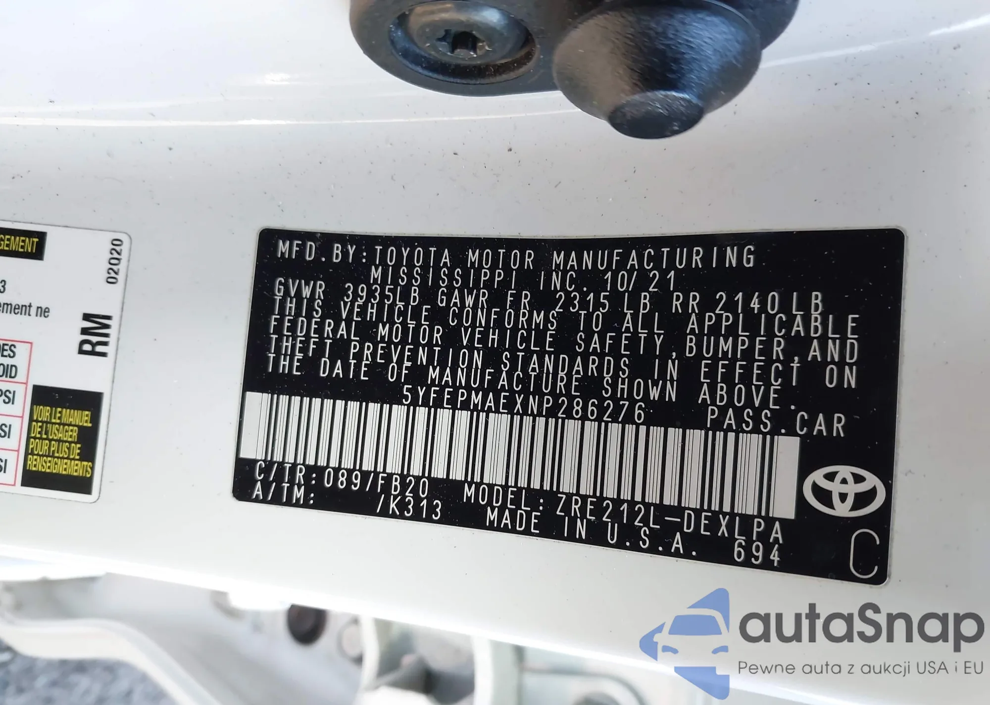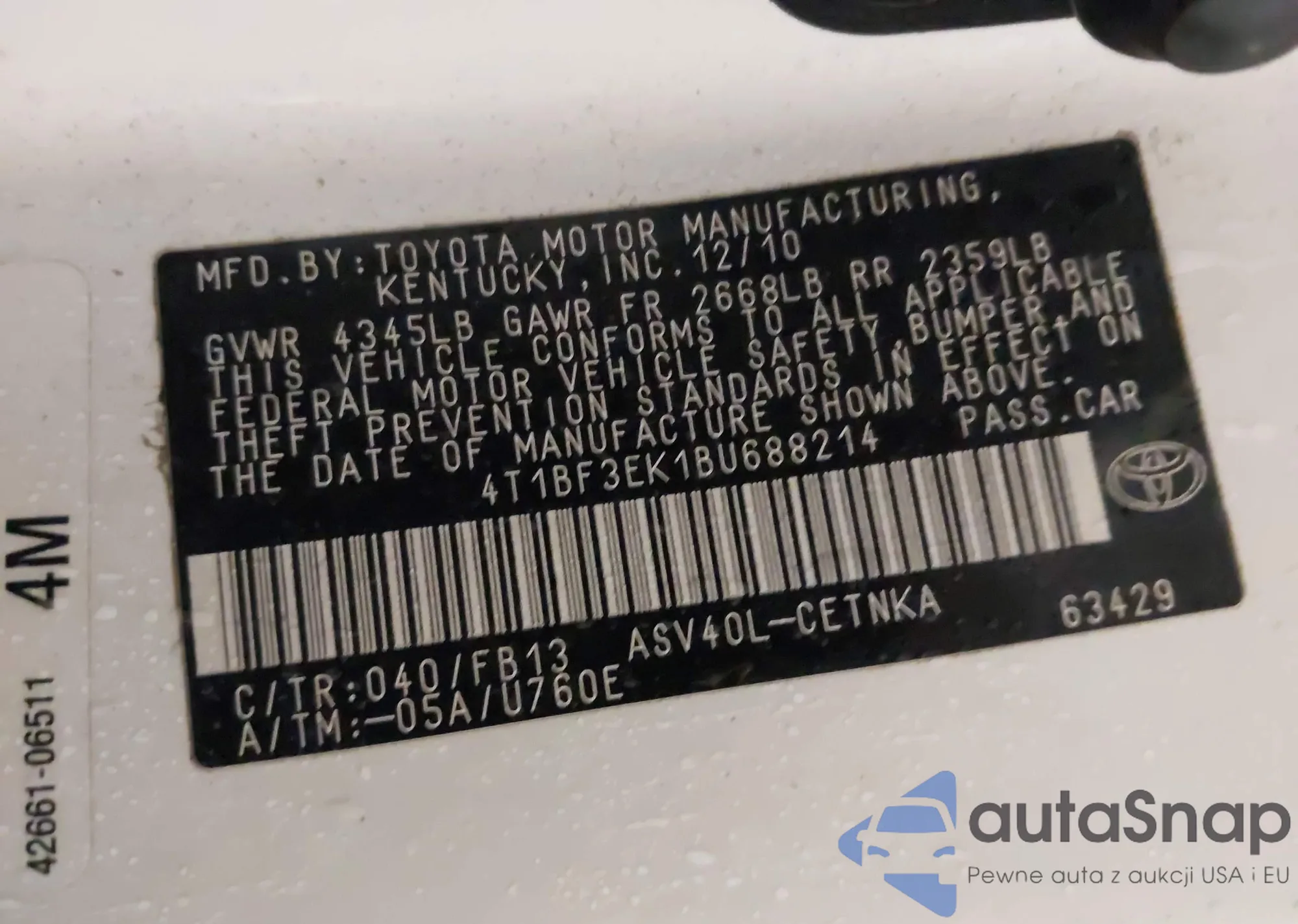 • VIN 4T1BF3EK1BU688214