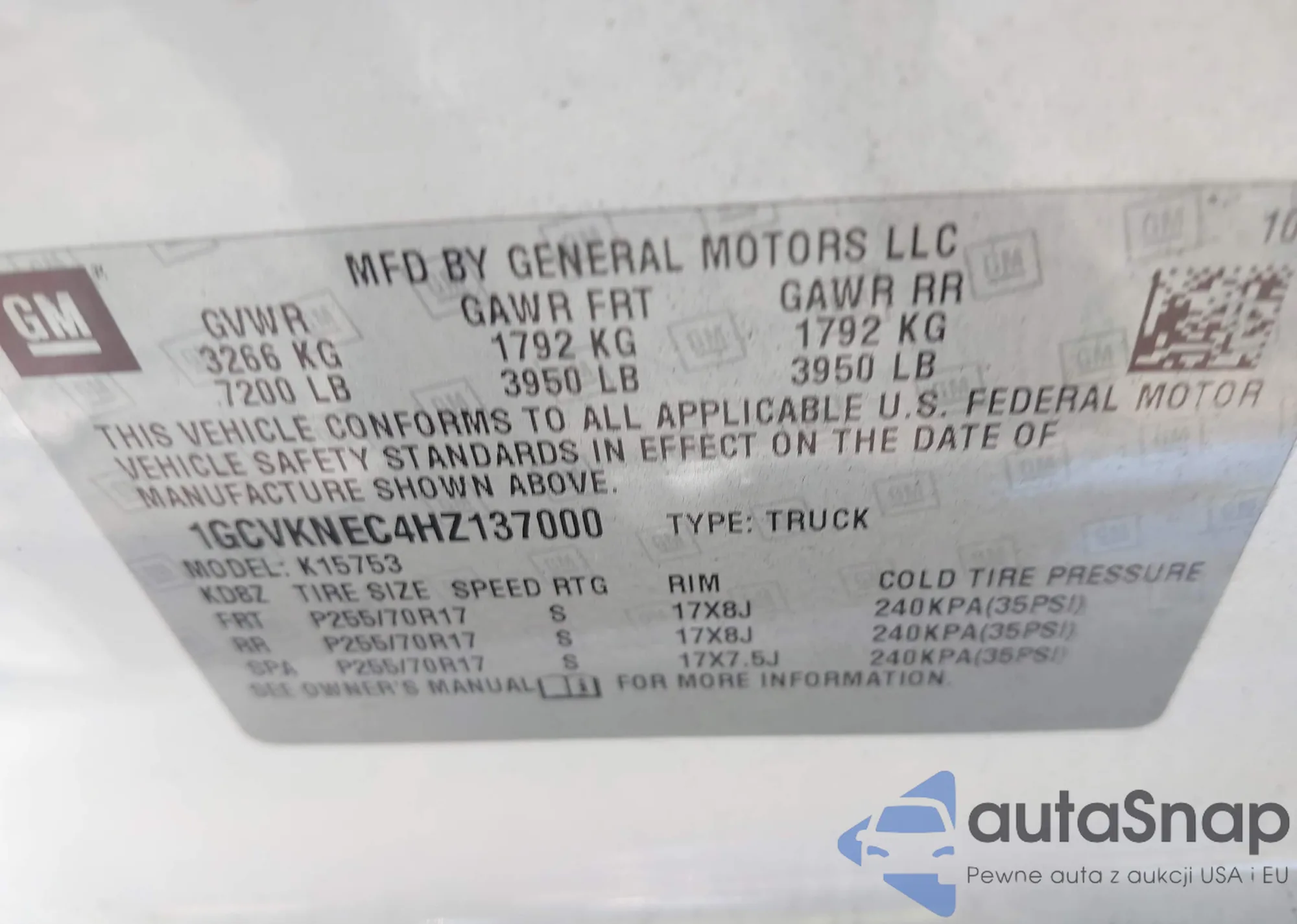 LOT: 40868770 VIN: 1GCVKNEC4HZ137000