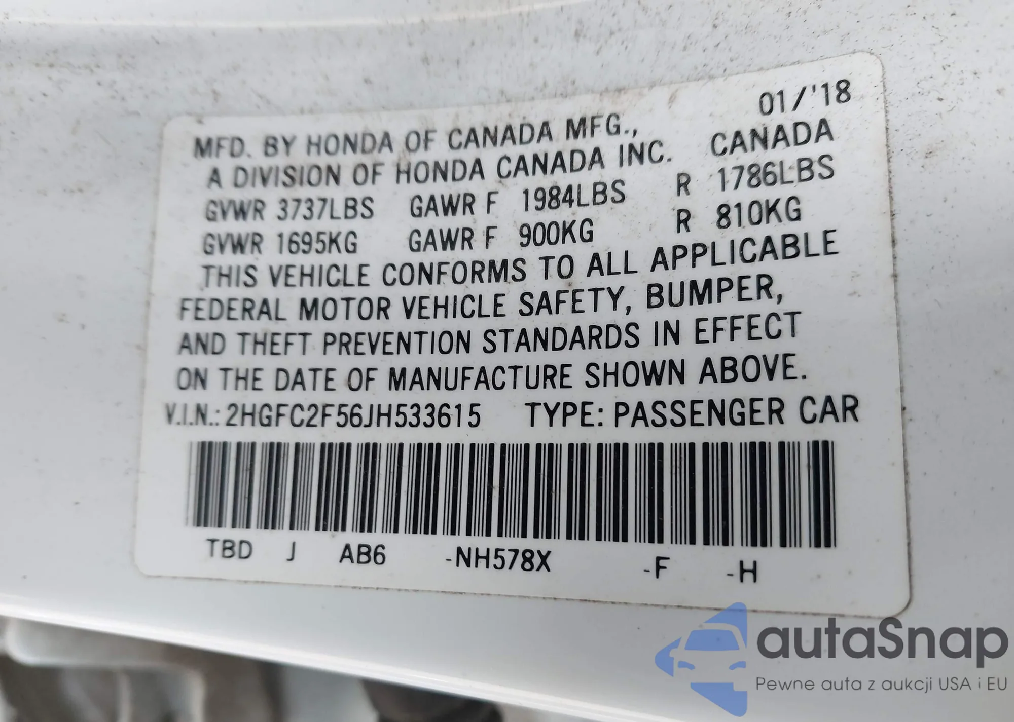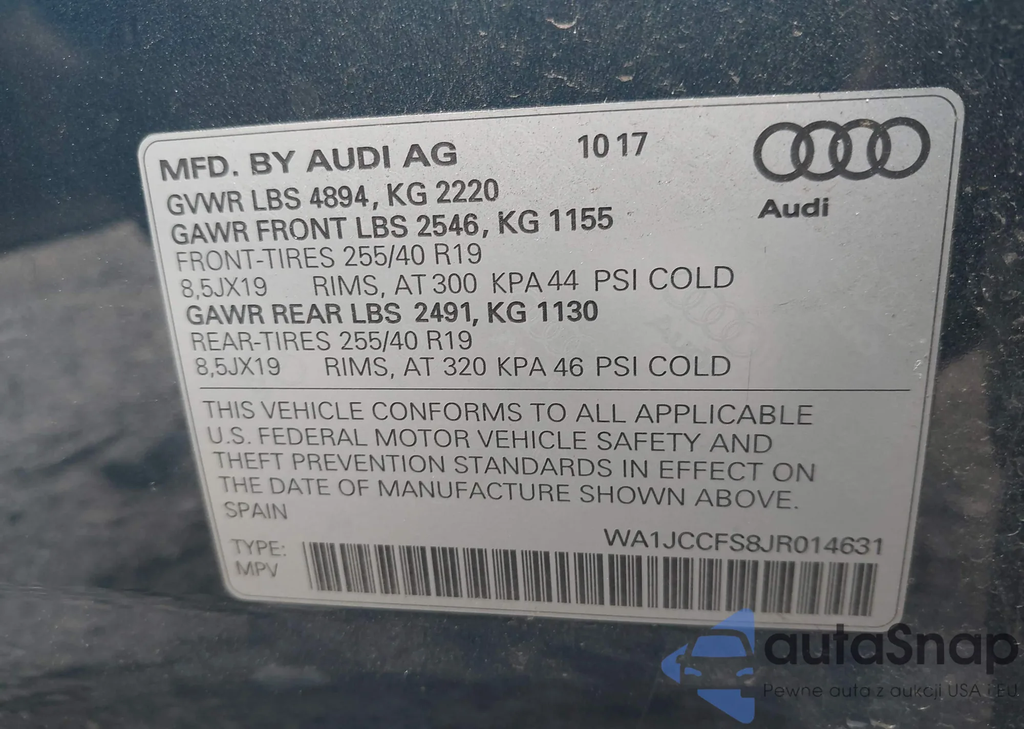 LOT: 41958696 VIN: WA1JCCFS8JR014631