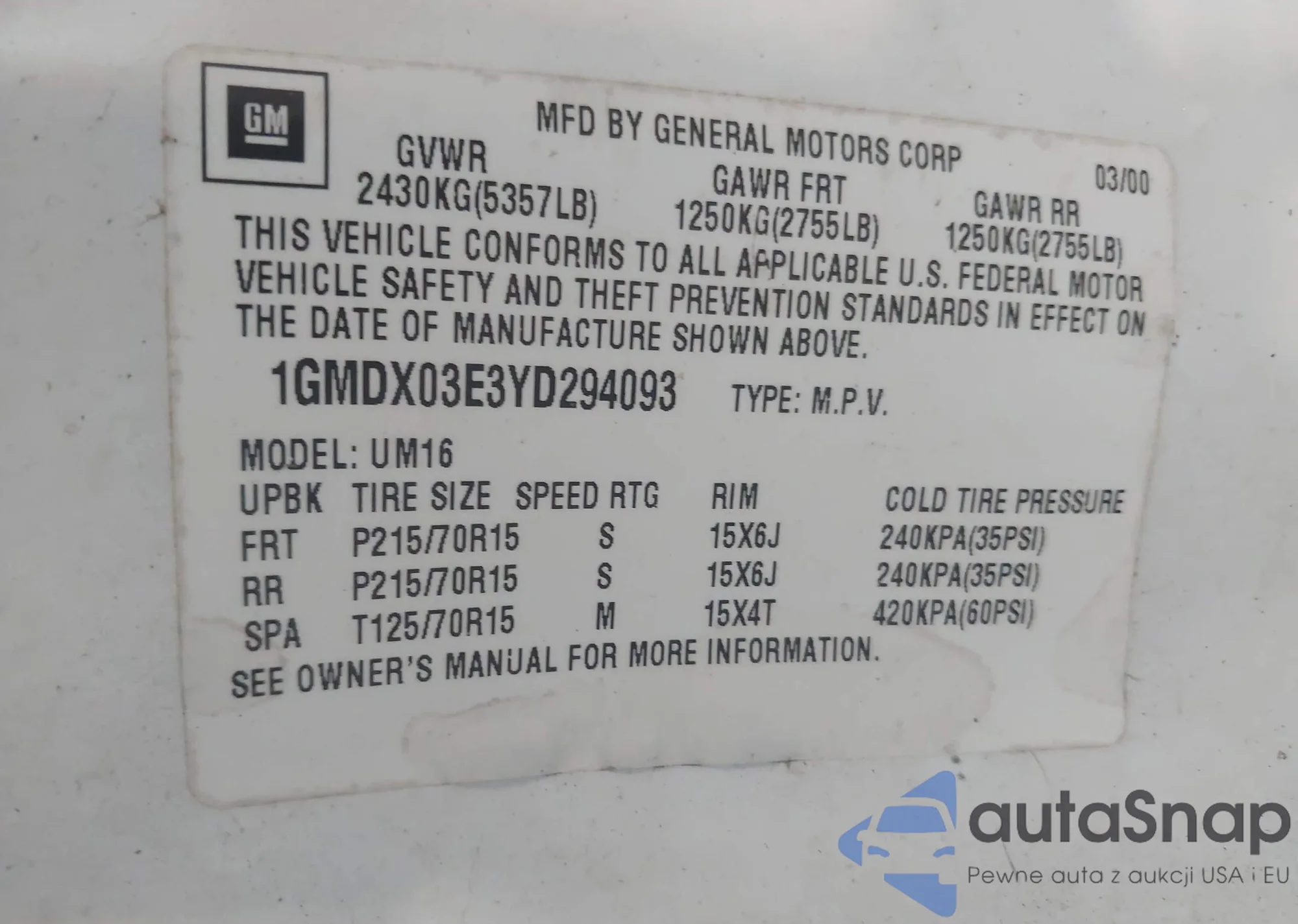 • VIN 1GMDX03E3YD294093
