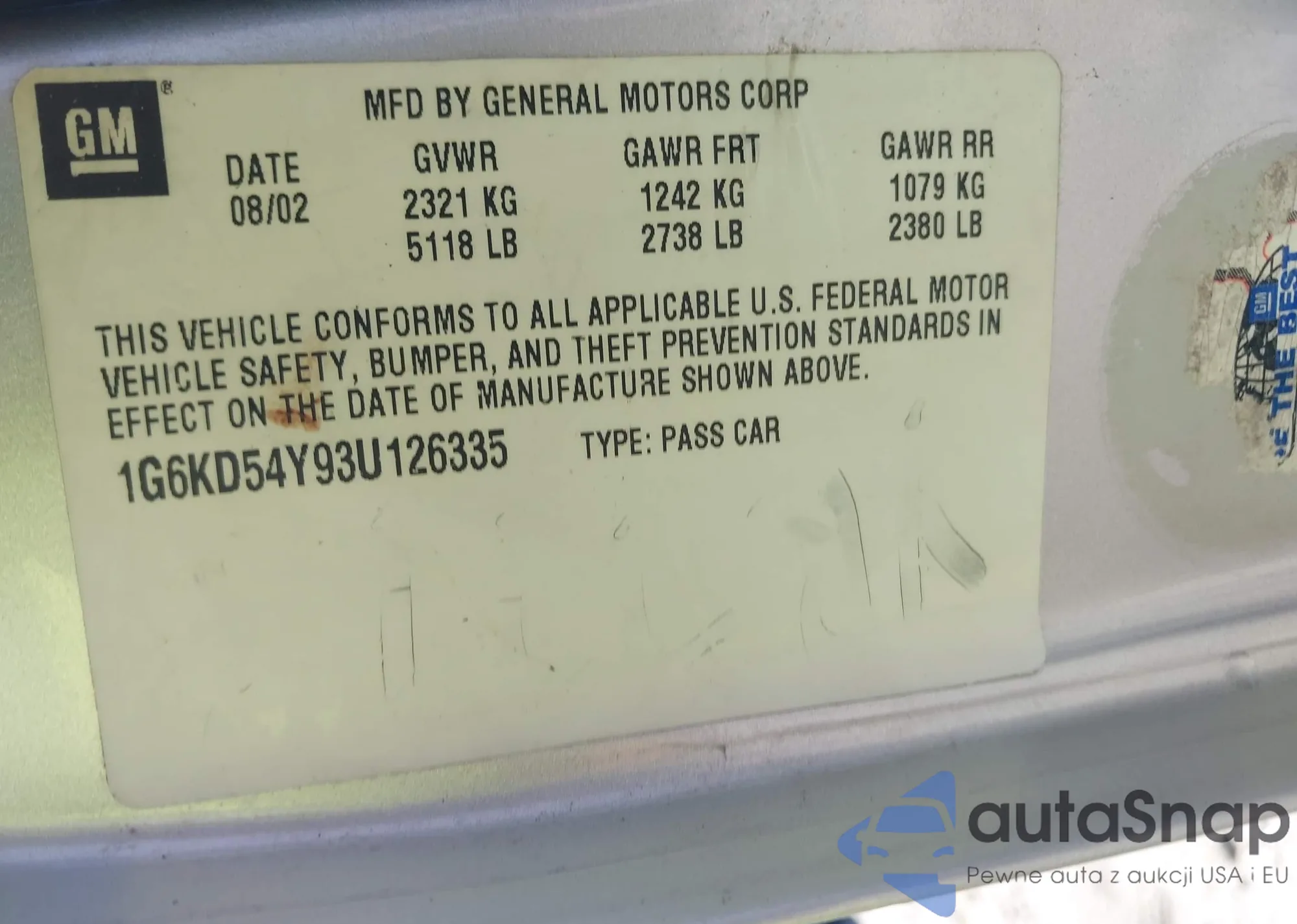• VIN 1G6KD54Y93U126335