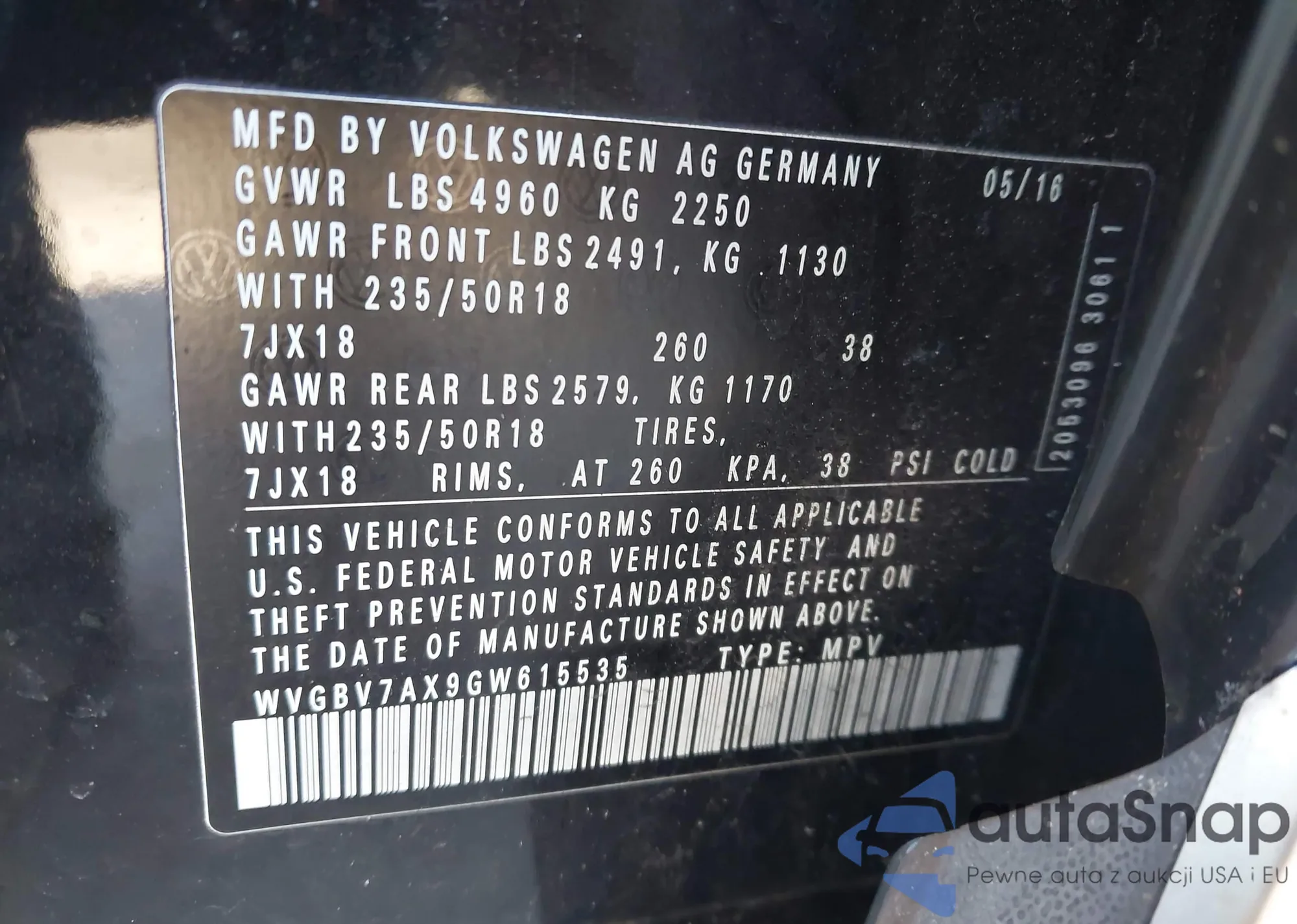• VIN WVGBV7AX9GW615535